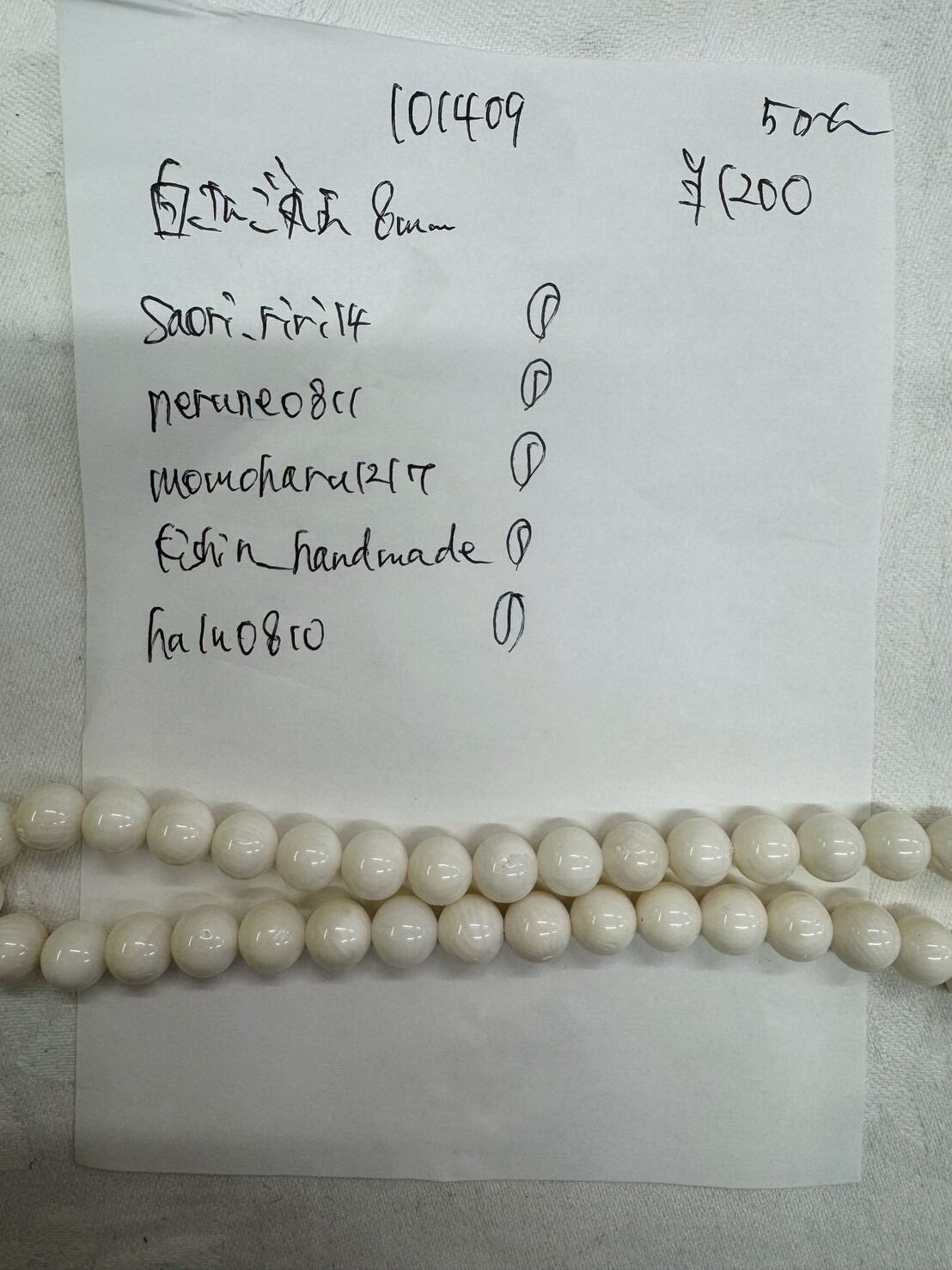 7. 101409 白サンゴ 8ミリ丸玉 @1200 (1)