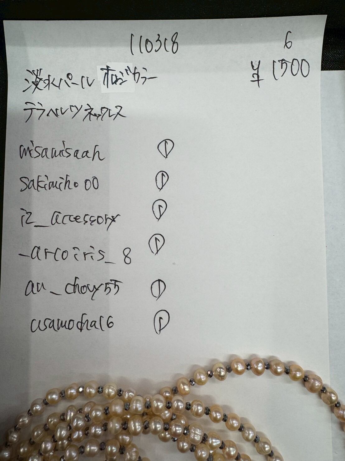 6. 110318 淡水パール橙×テラヘルツ ネックレス @1500 (1)