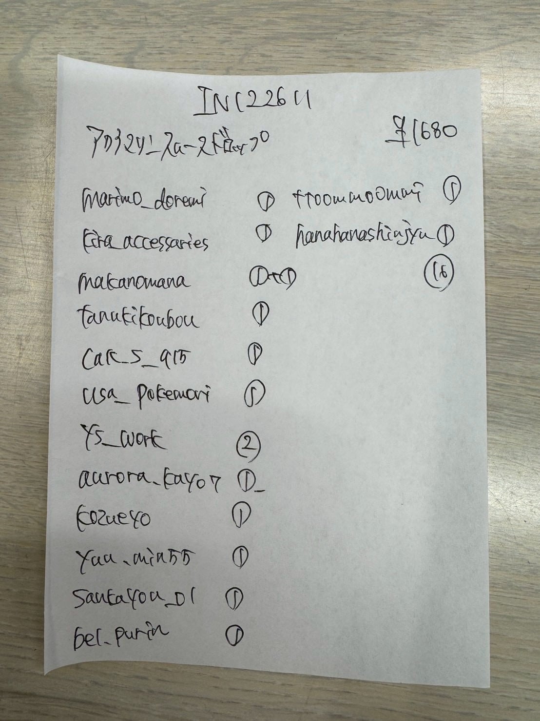 品番 品名 単価 数量