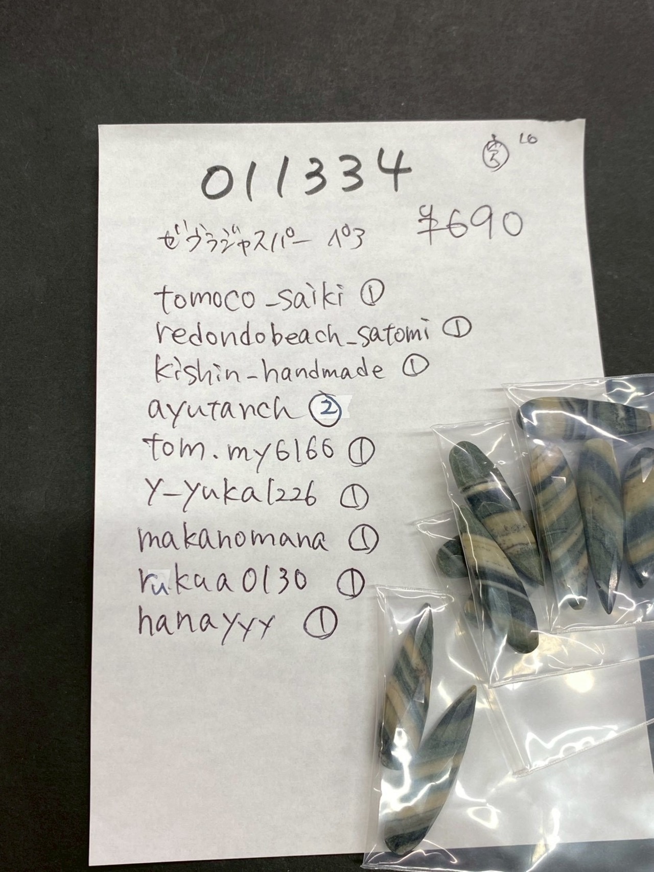 7 011334 ゼブラジャスパー ロングペアシェイプ ペア @690 1