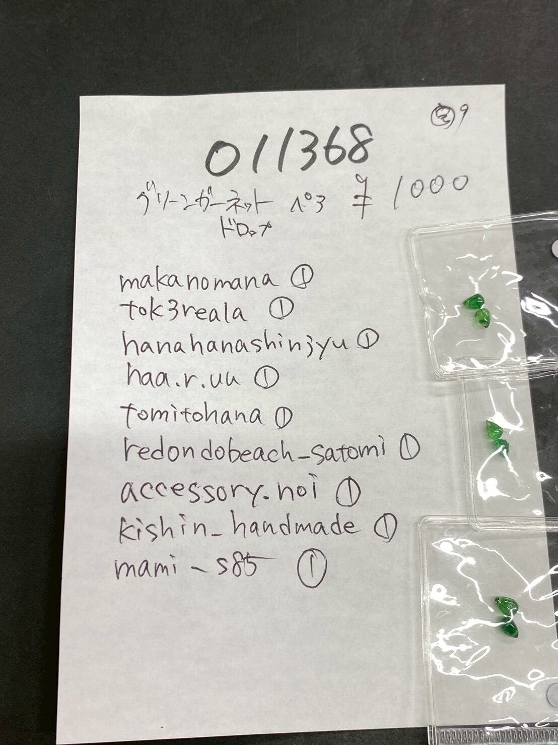 10 011368 グリーンガーネット ドロップペア @1000 1