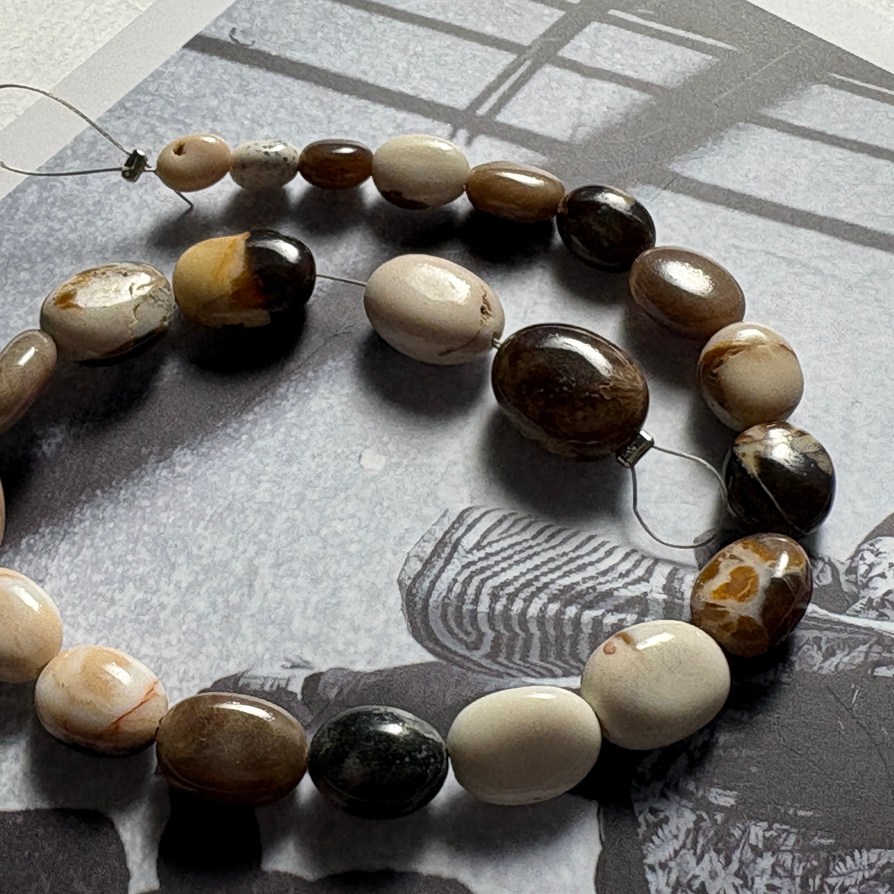 〔天然石 ジャスパー スムースオーバル半連 〕