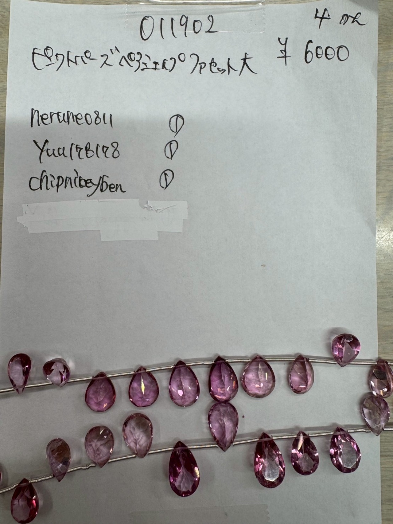 1 011902 ピンクトパーズ ペアシェイプファセット大 @6000 1