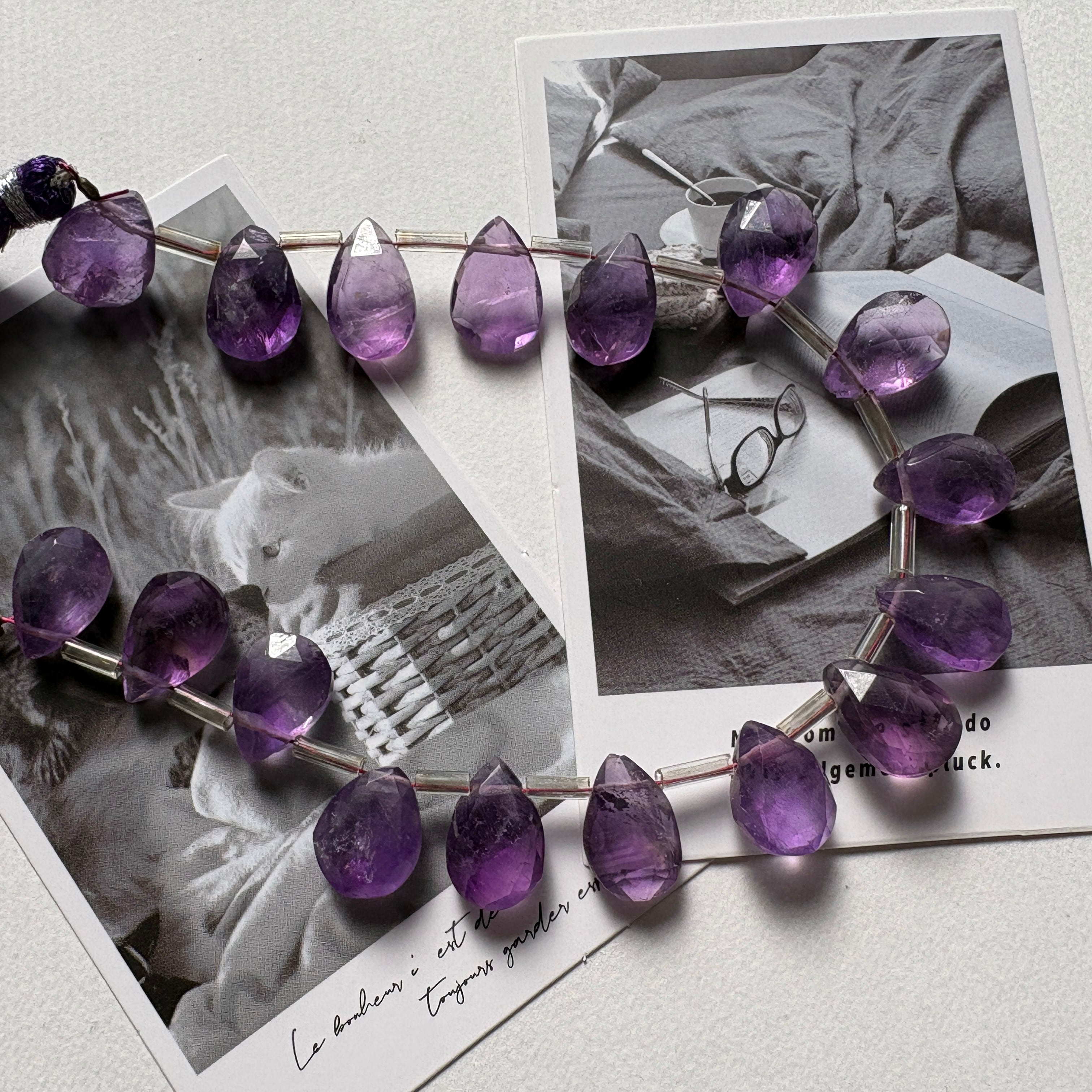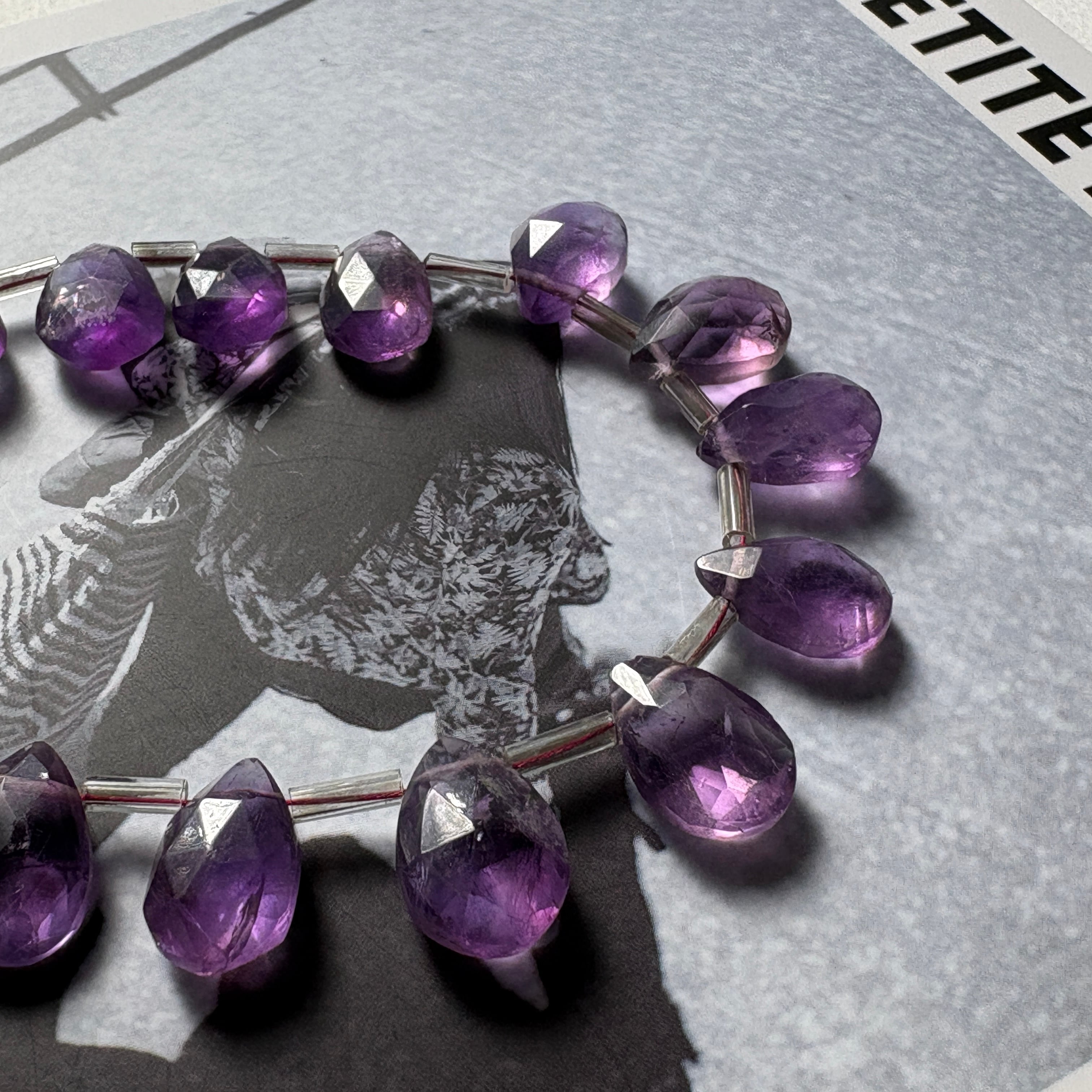 〔天然石 アメジスト ペアシェシェイプ 〕