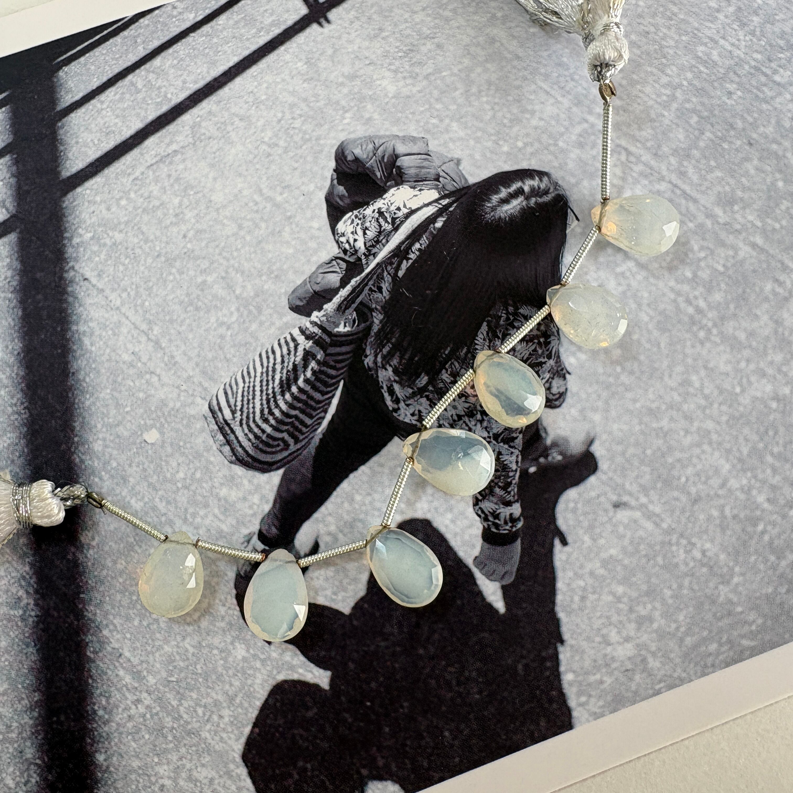 〔天然石 ミルキークォーツ ペアシェシェイプ 〕