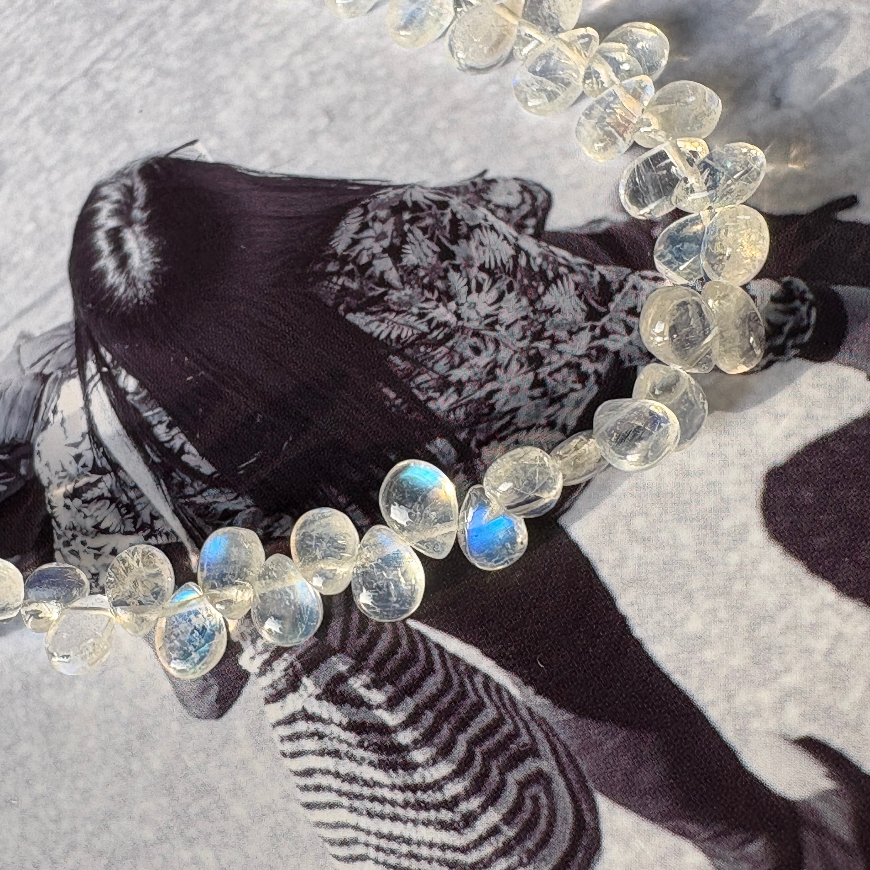 〔天然石 ムーンストーン スムースペアシェイプ半連 〕