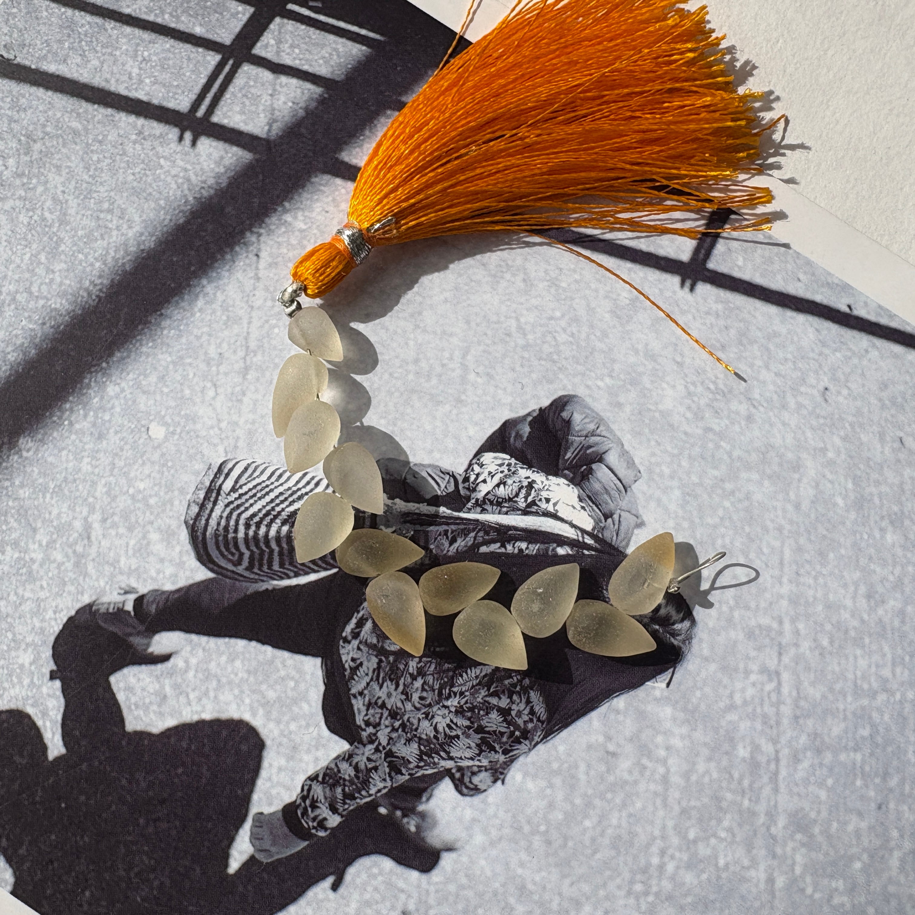 〔天然石 シトリン(フロスト) スムースつぼみ半連 〕