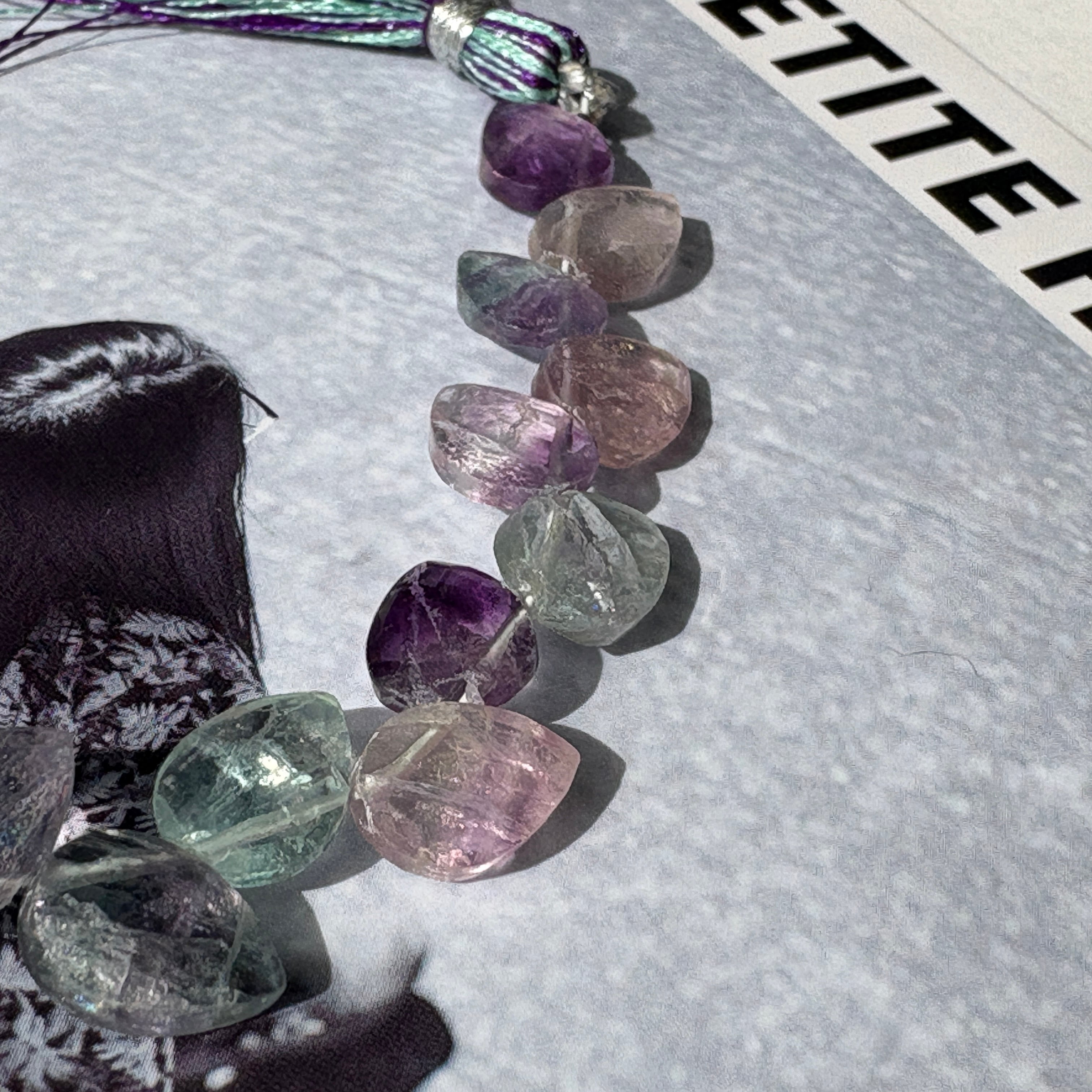 〔天然石 マルチフローライト フラットつぼみ半連 〕