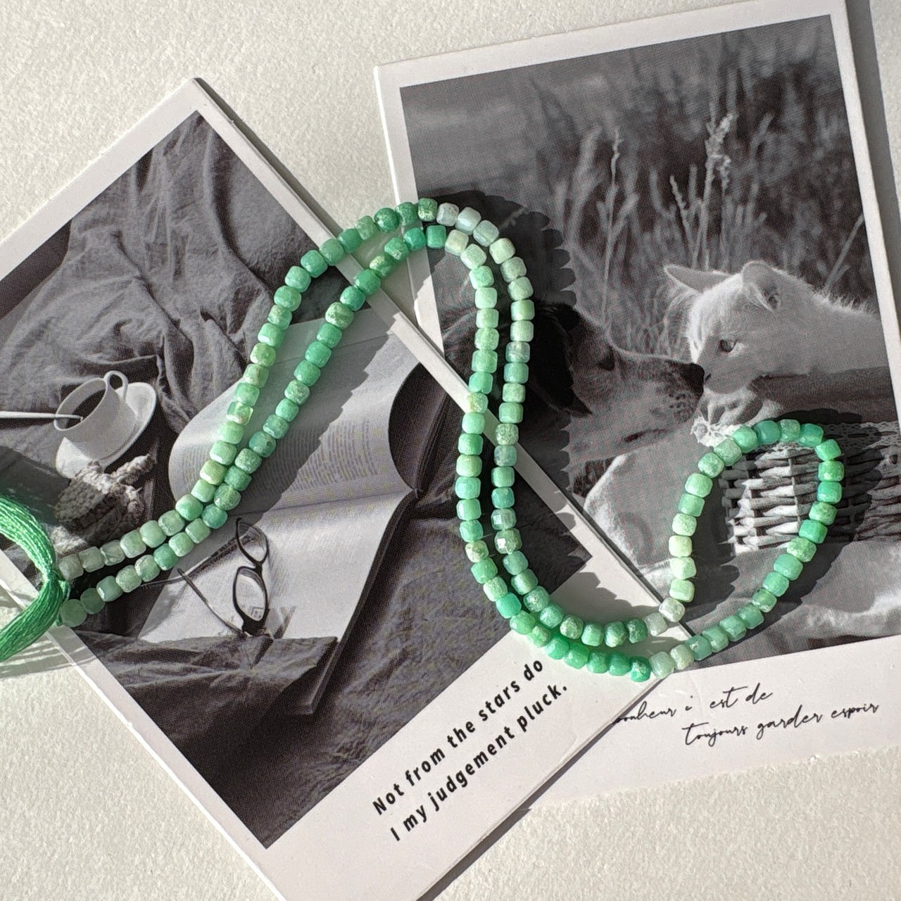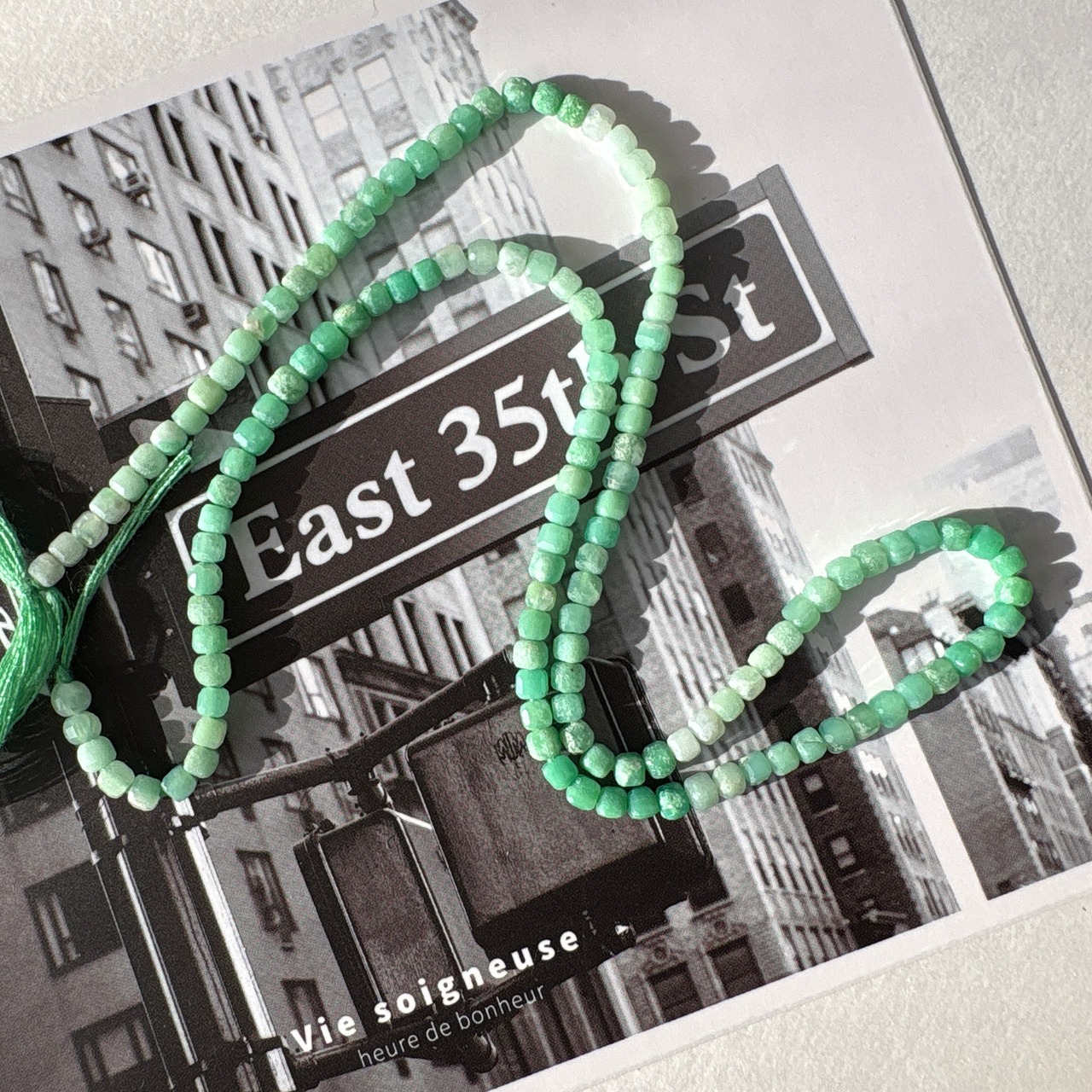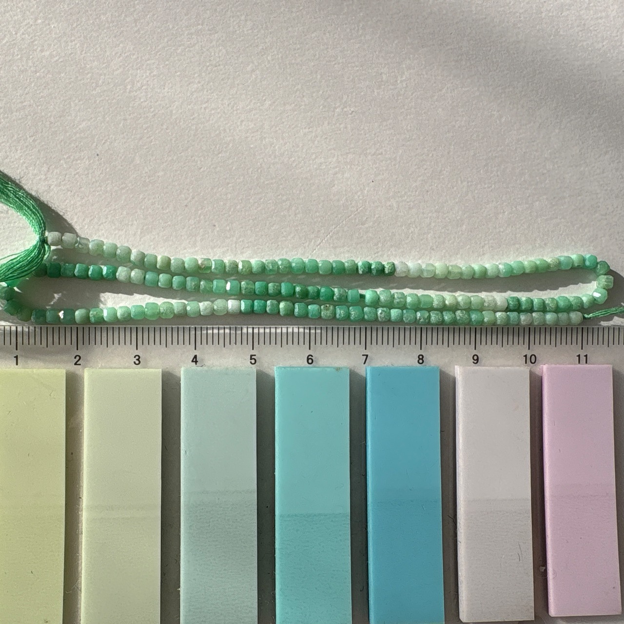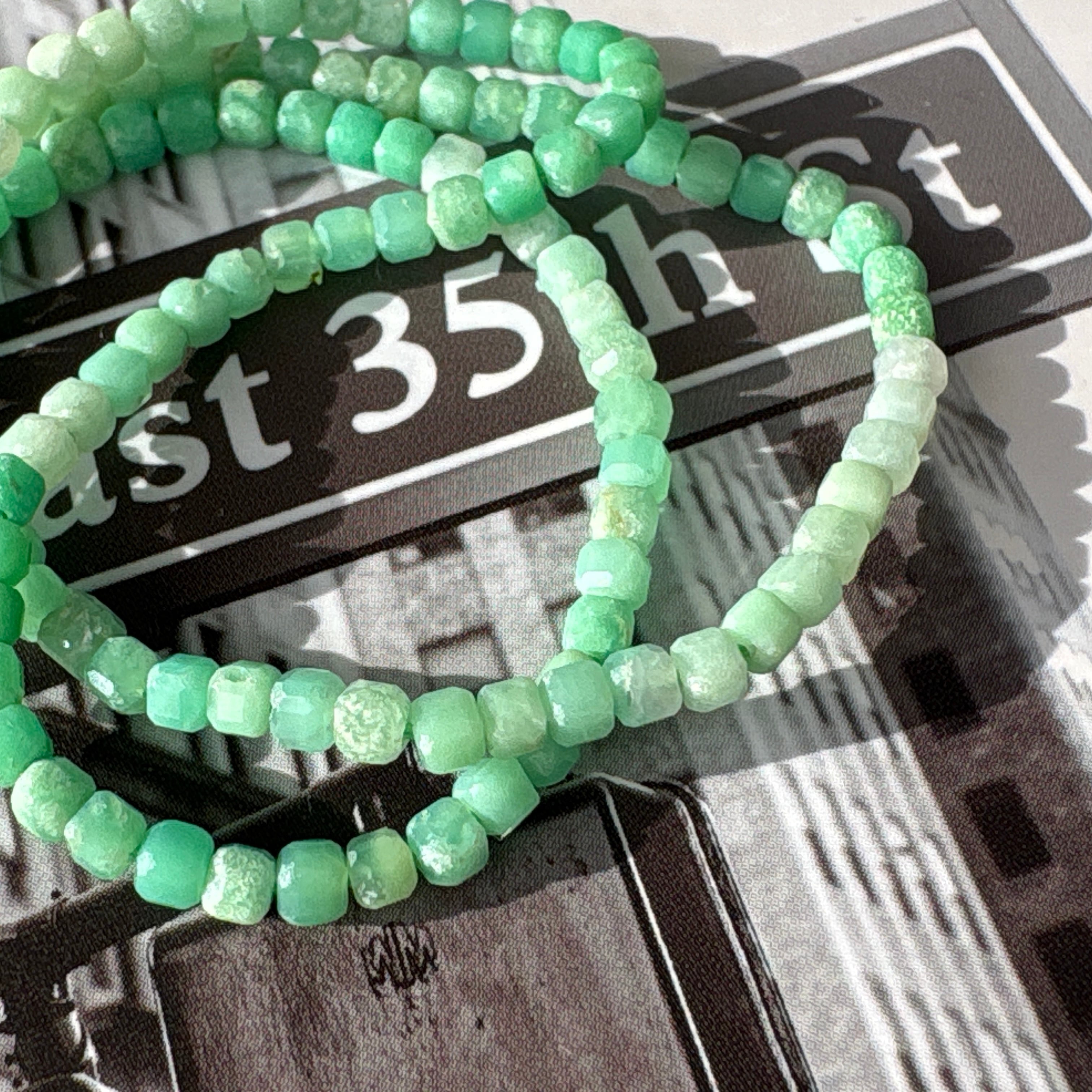 ◆エメラルドグリーンに角砂糖のようなカットが施され