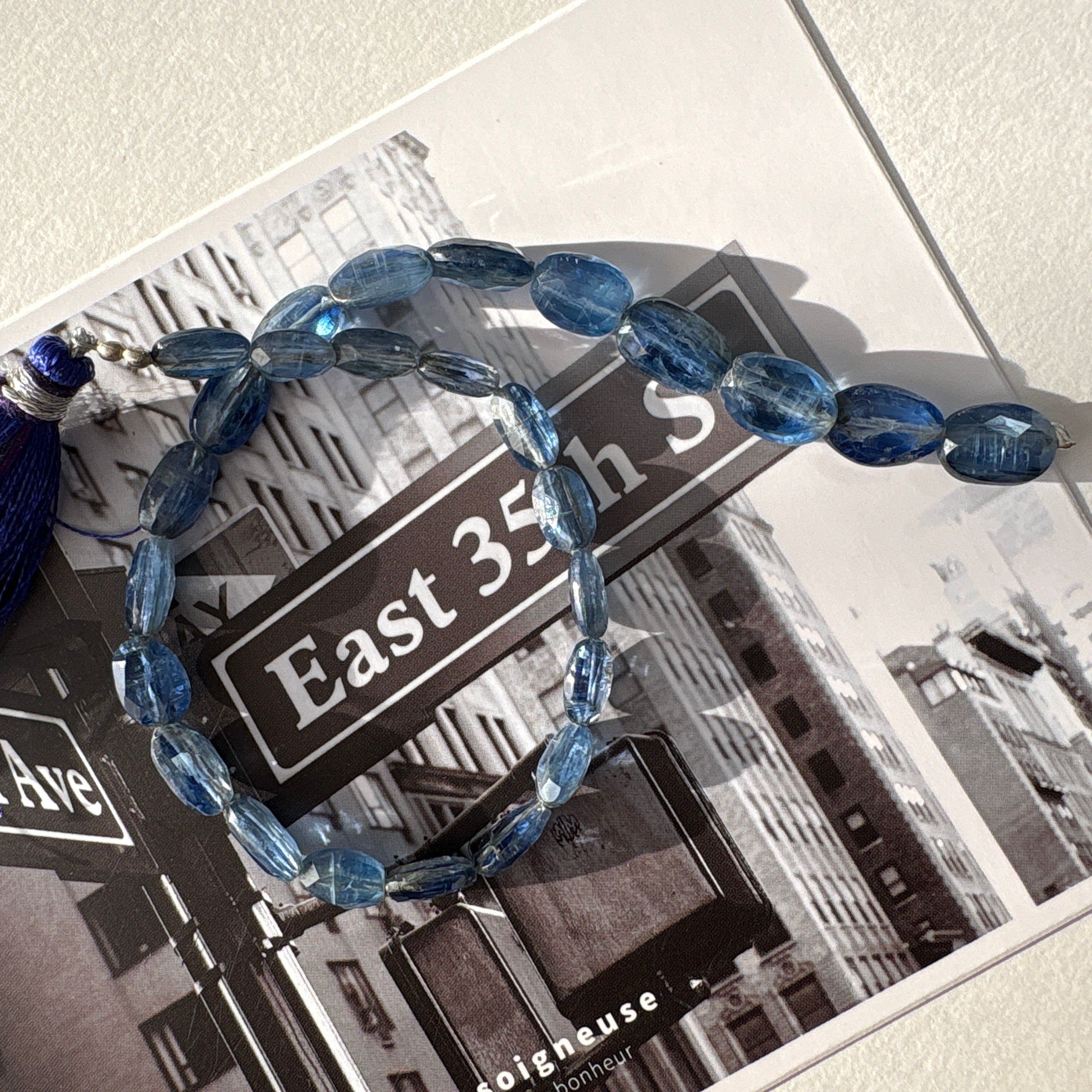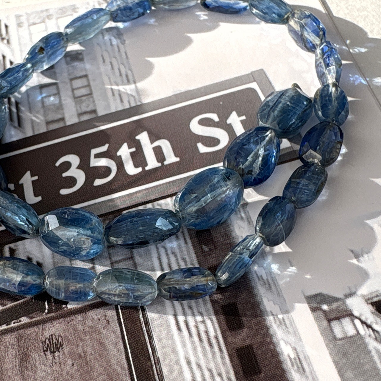 〔天然石 カイヤナイト オーバルカット半連 〕