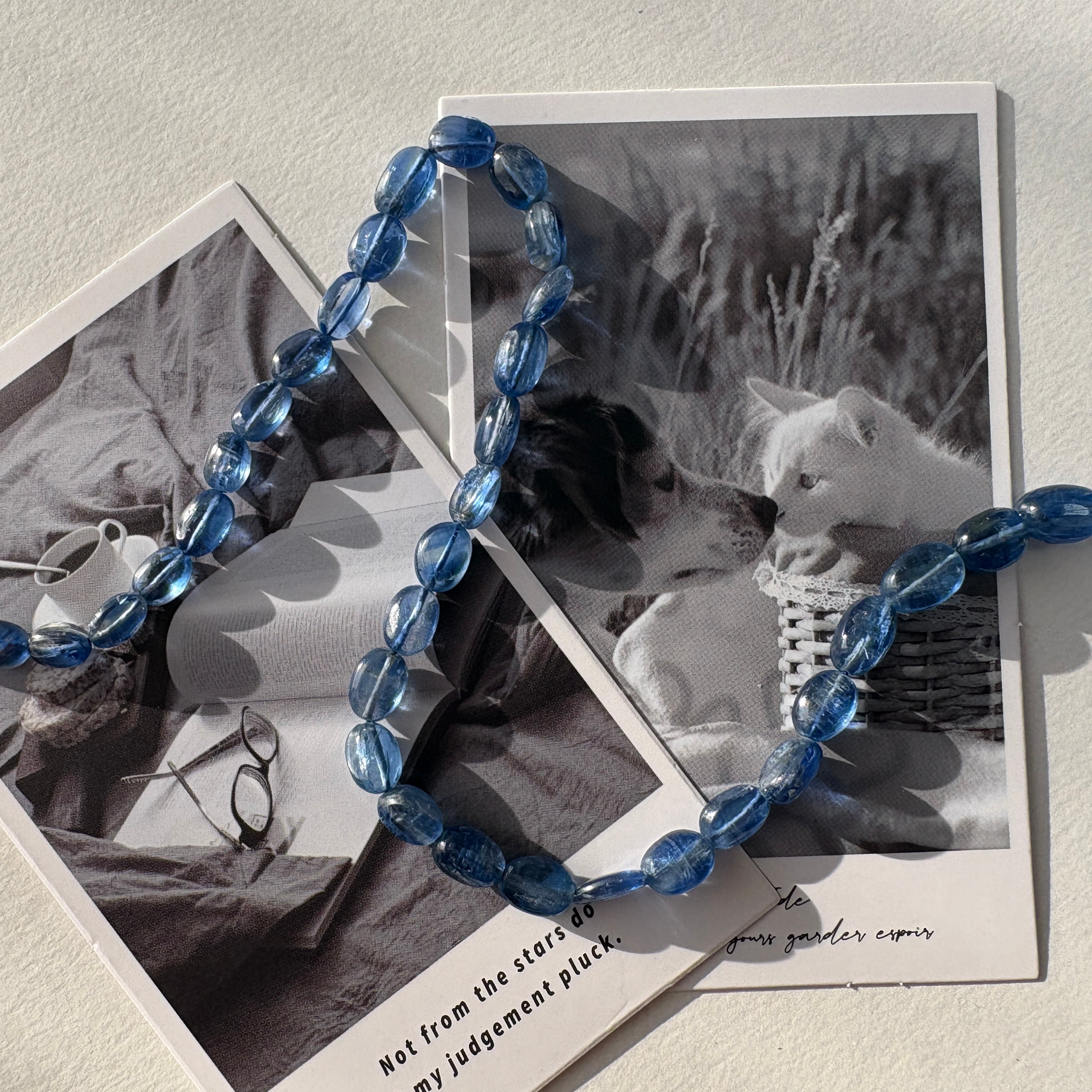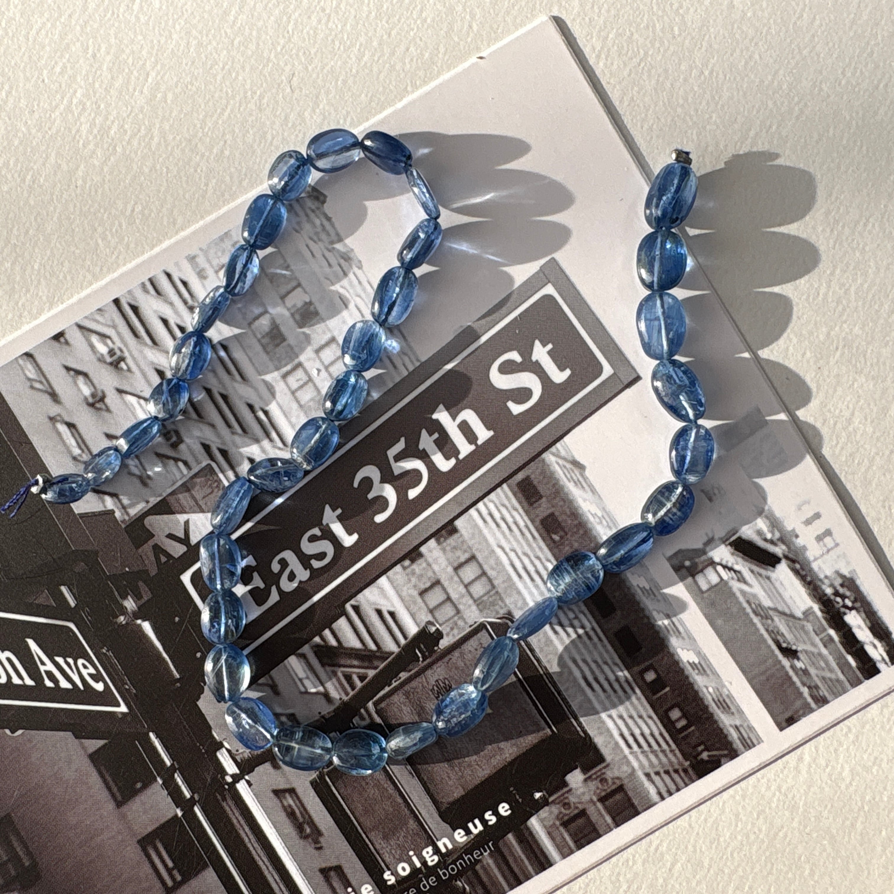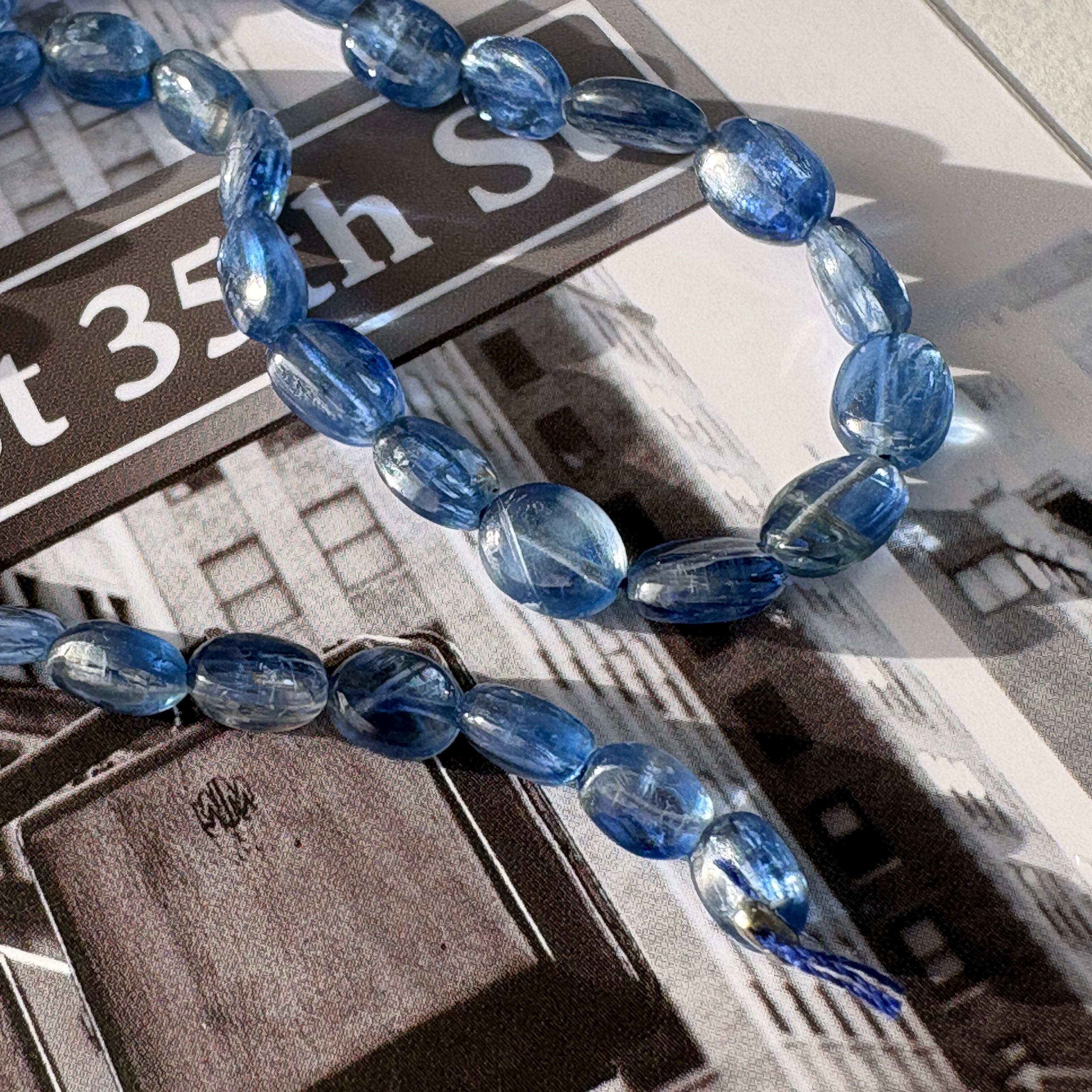 〔天然石 カイヤナイト スムースオーバル半連 〕
