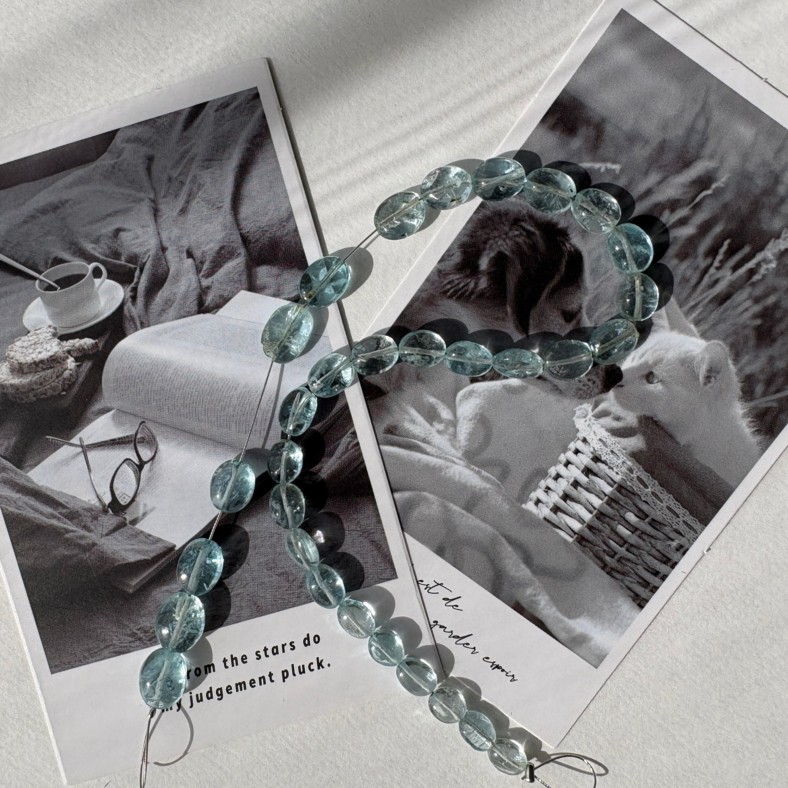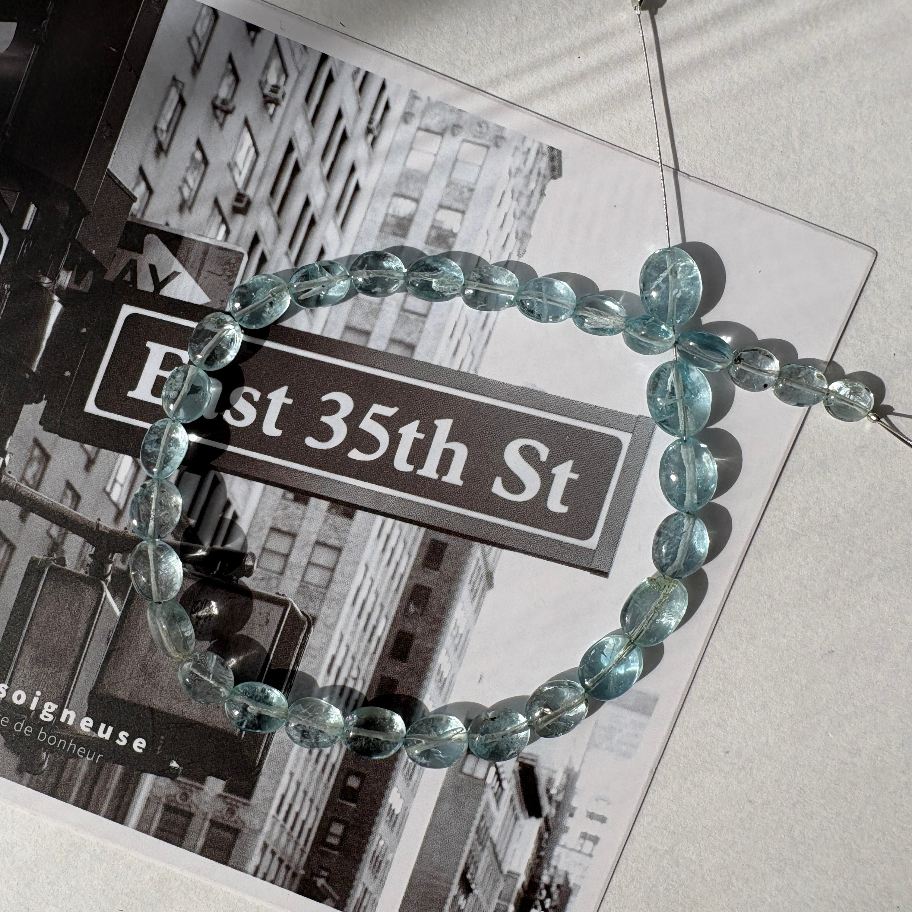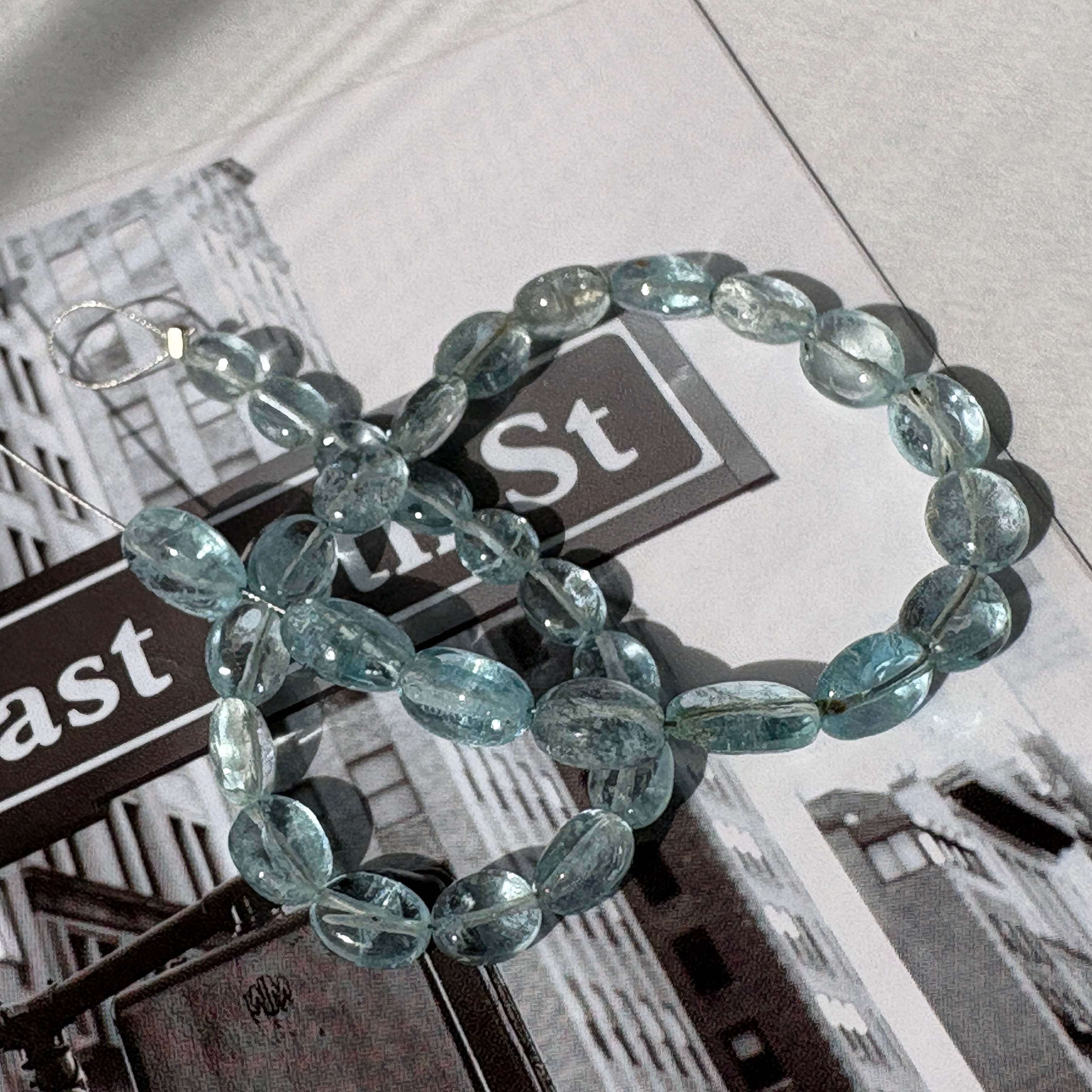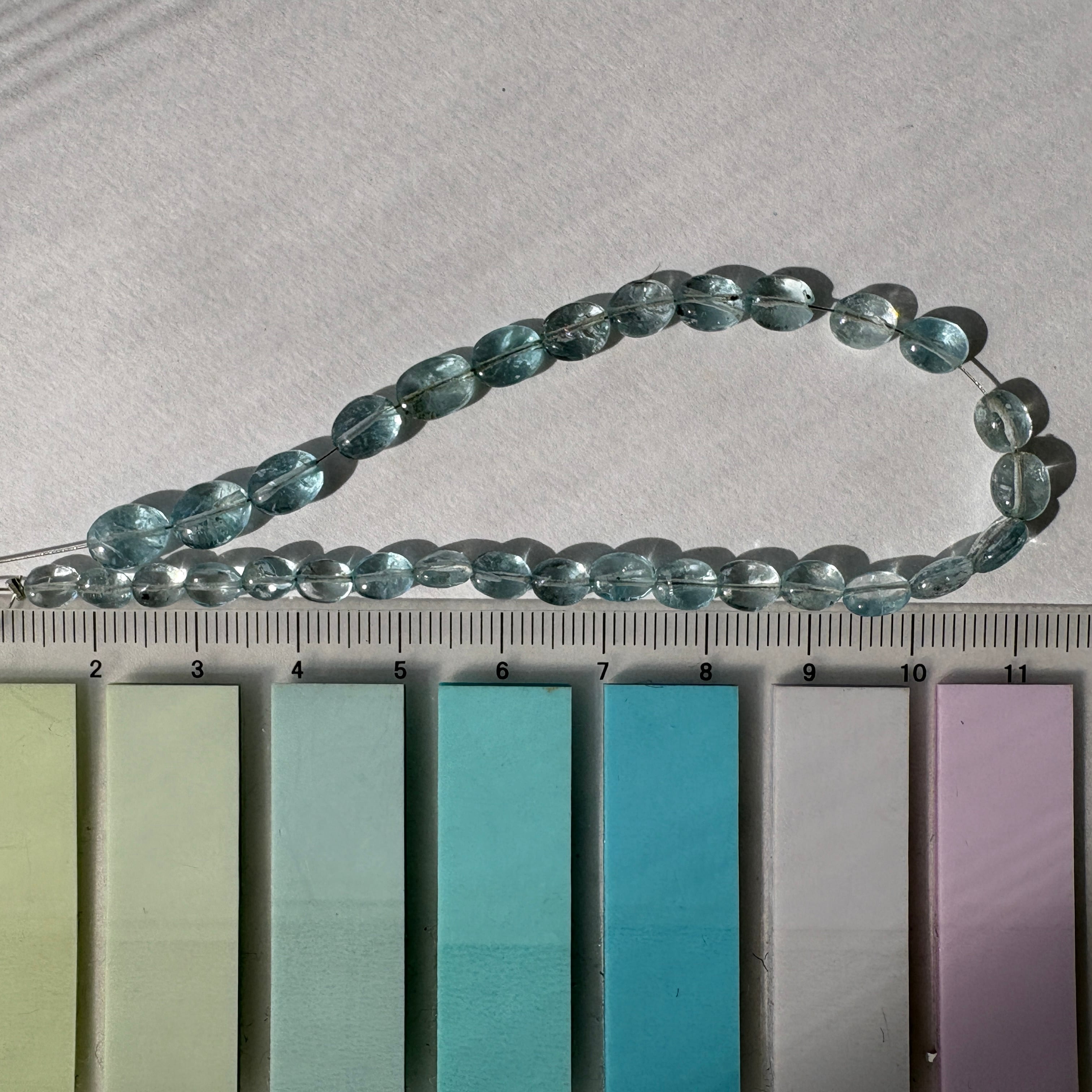 〔天然石 アクアマリン スムースオーバル半連 〕