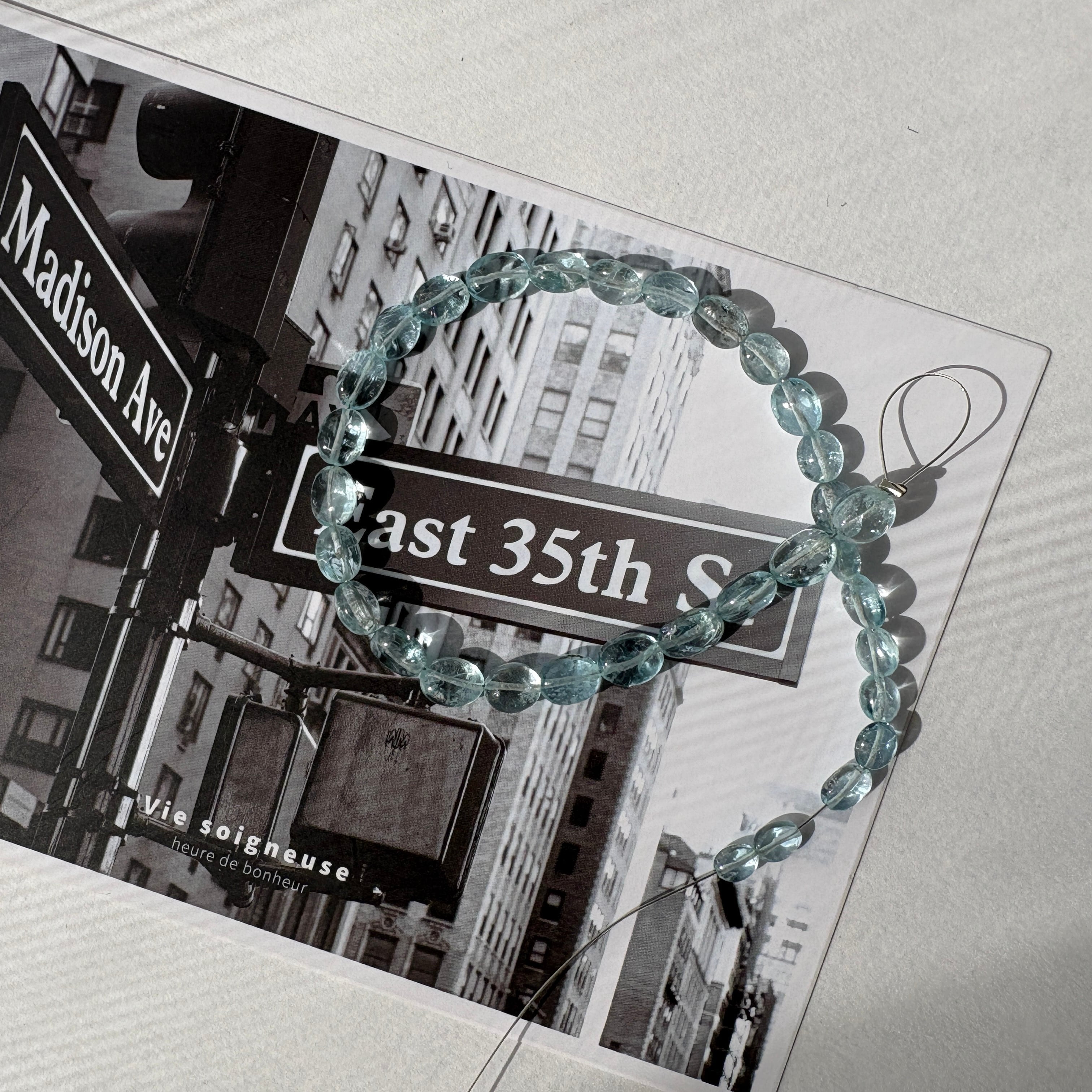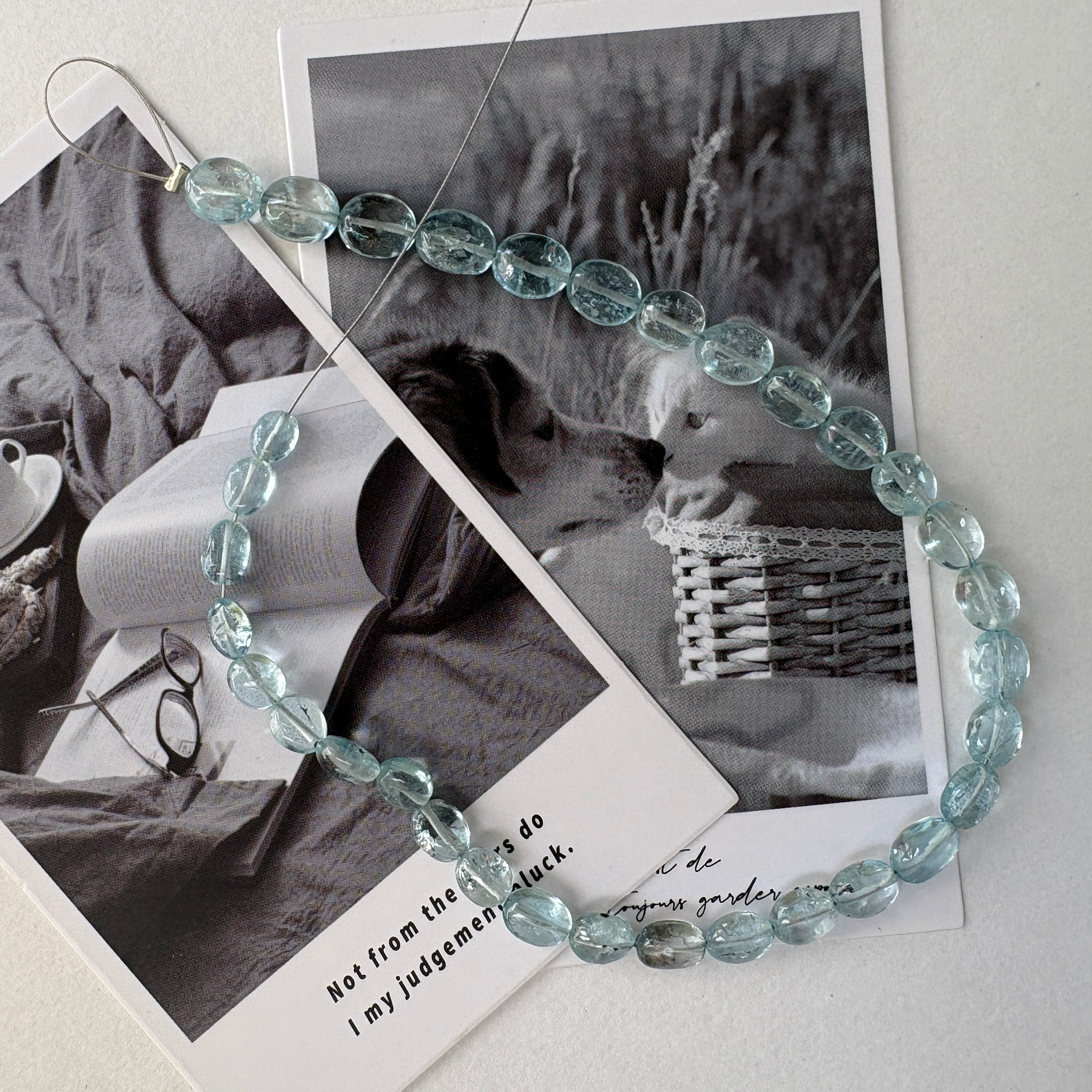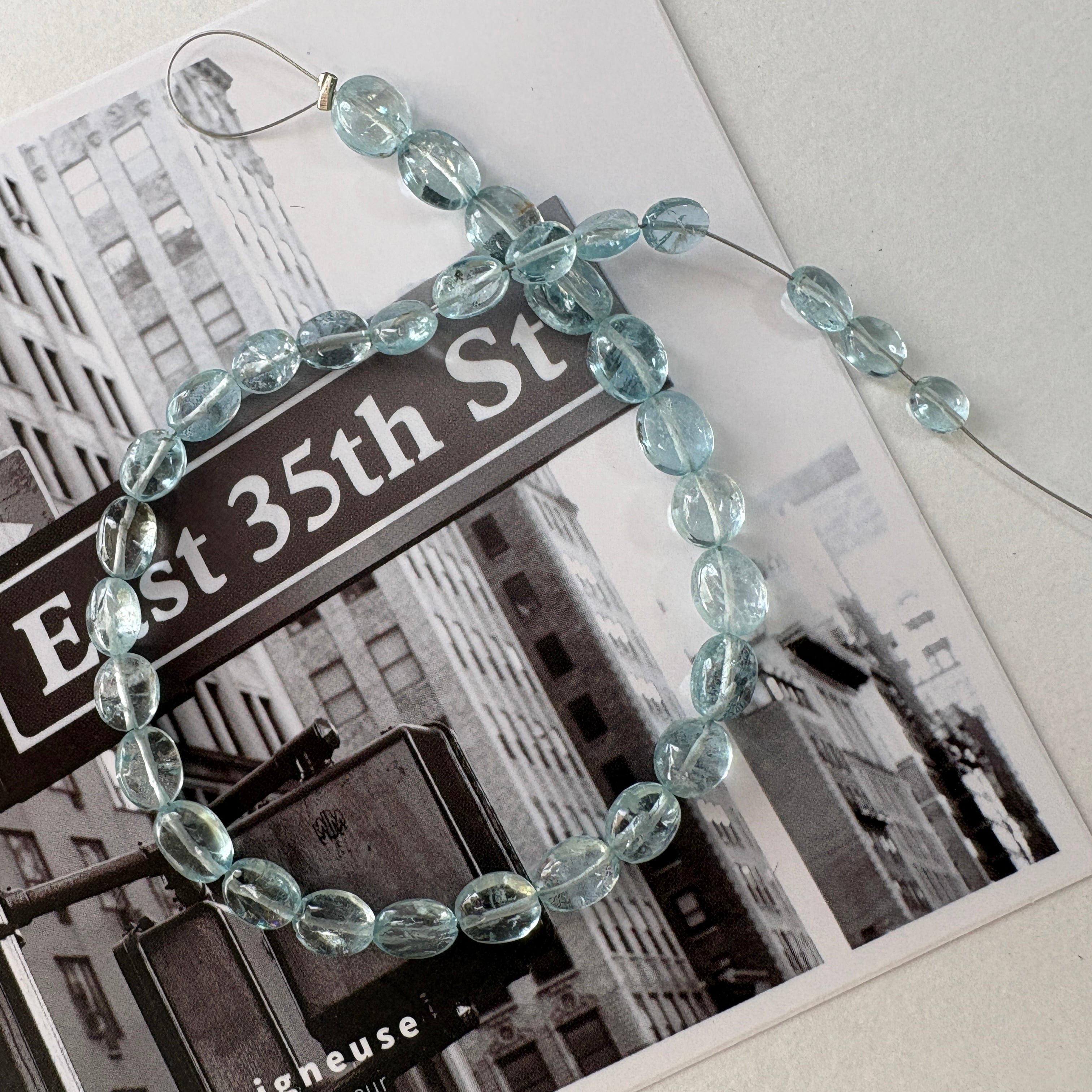 〔天然石 アクアマリン スムースオーバル半連 〕