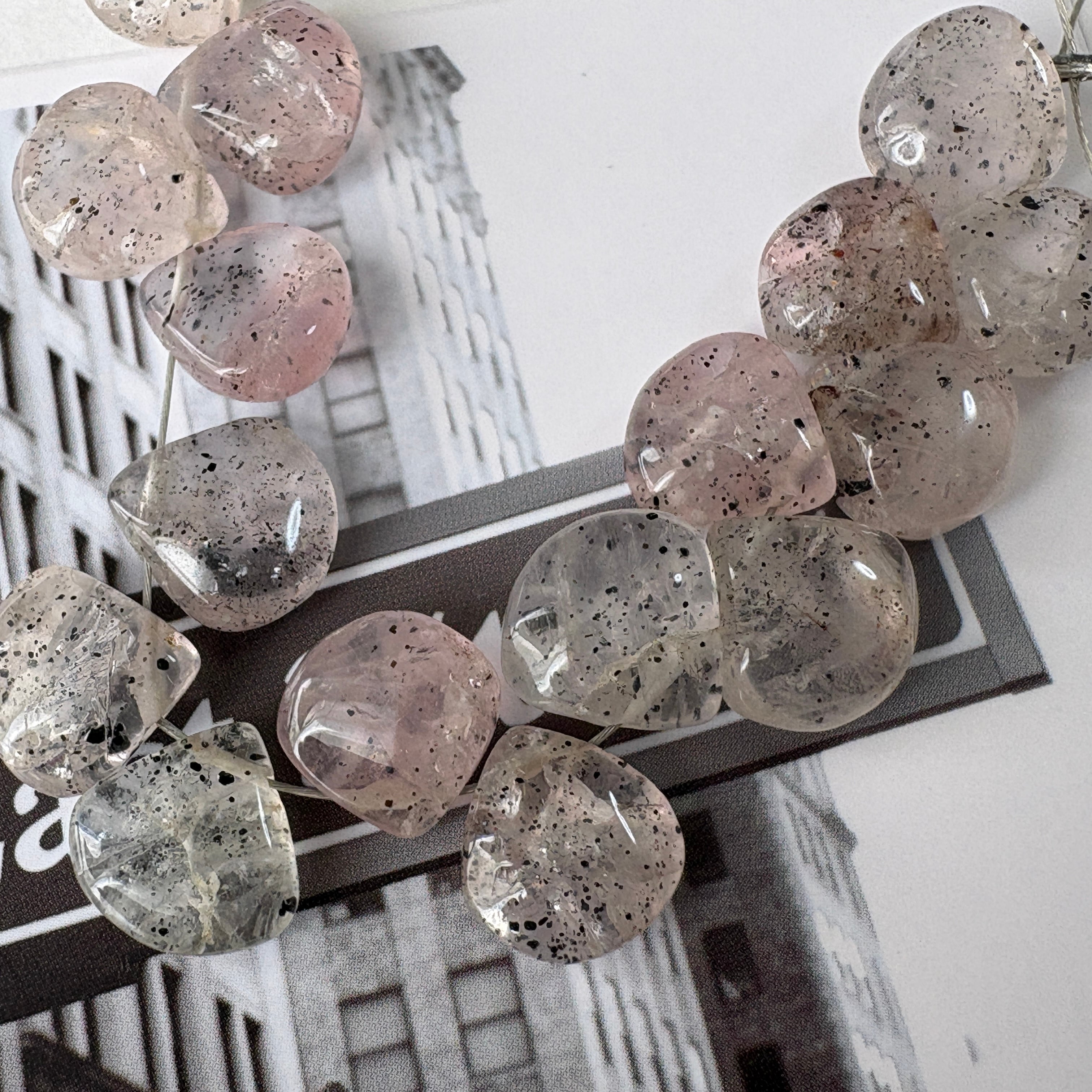 〔天然石 マイカインローズクォーツ マロン半連 〕