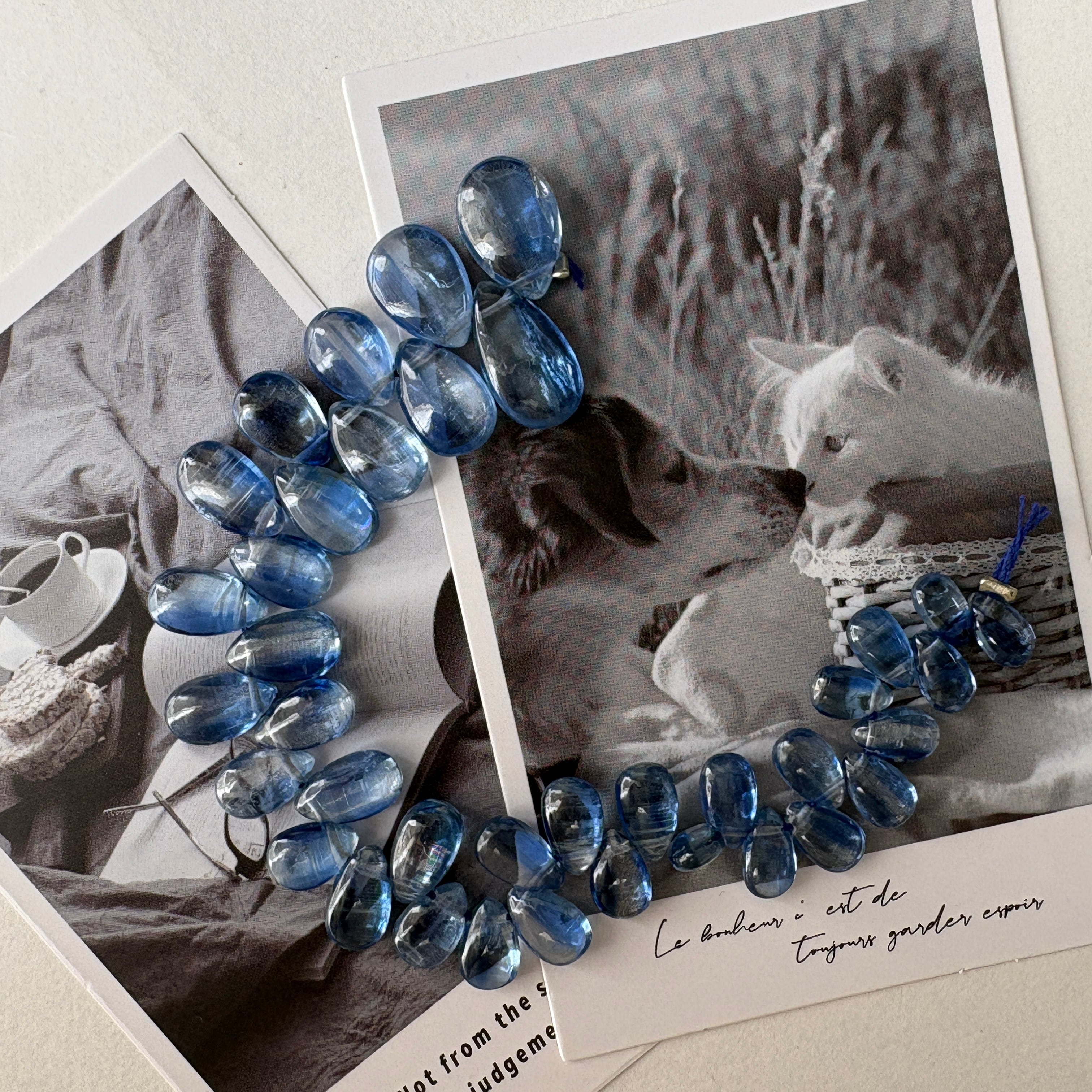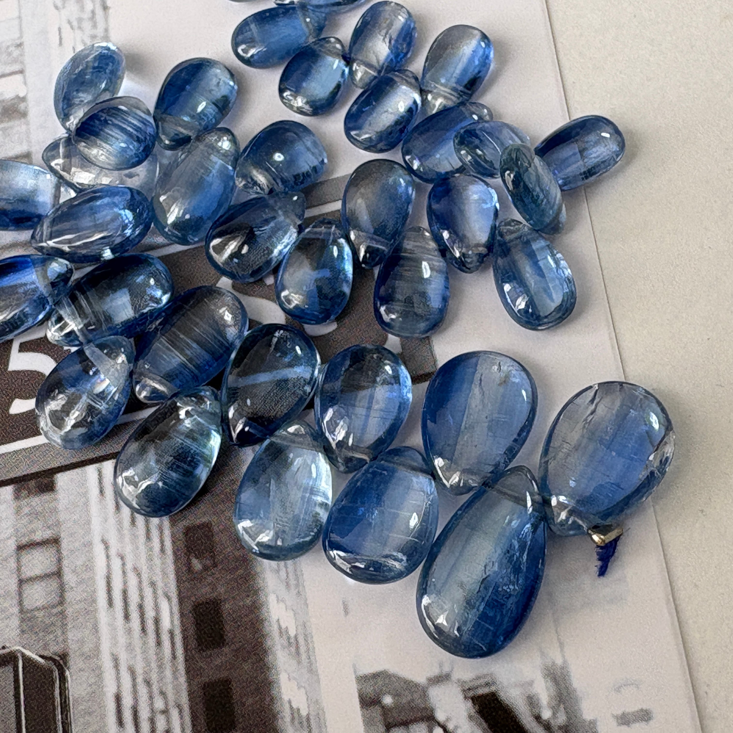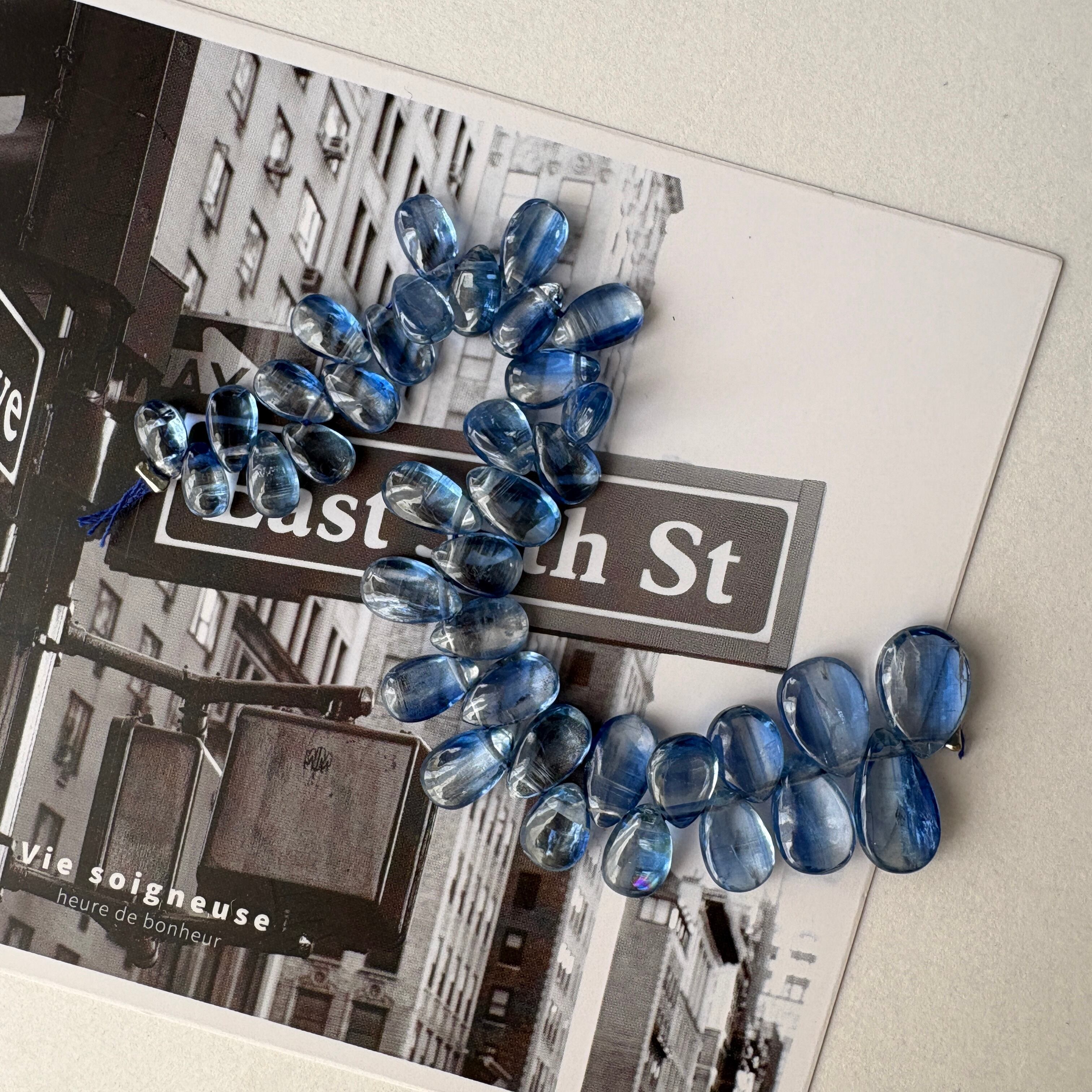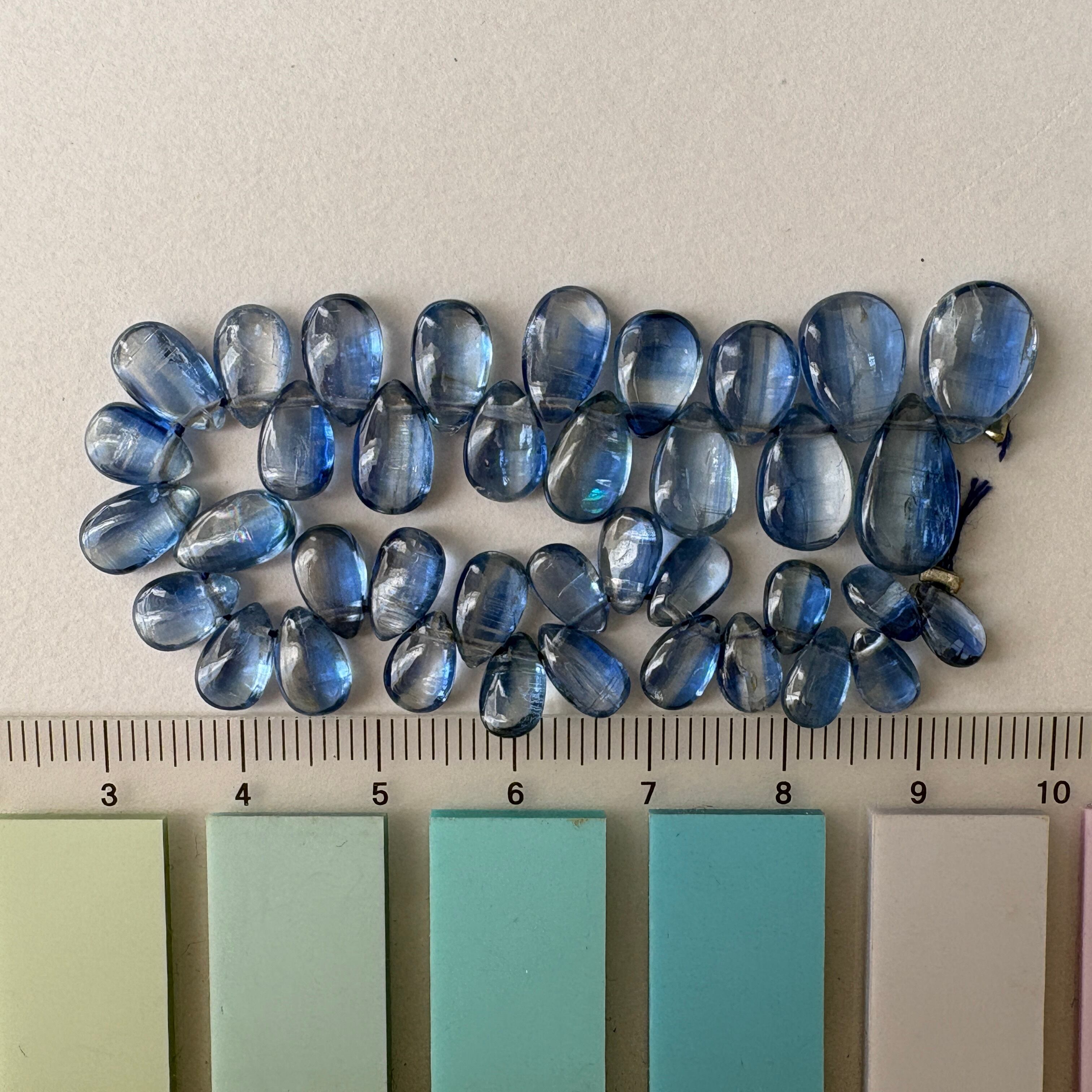 〔天然石 カイヤナイト スムースペアシェシェイプ 半連 〕