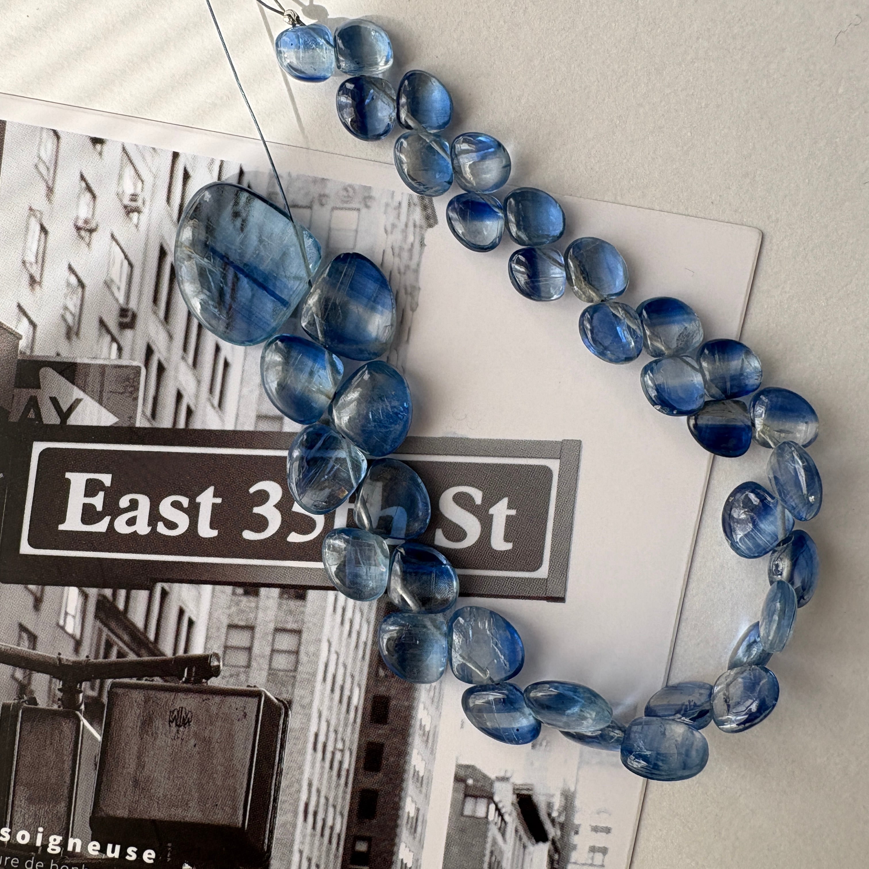 〔天然石 カイヤナイト スムースマロン 半連 〕