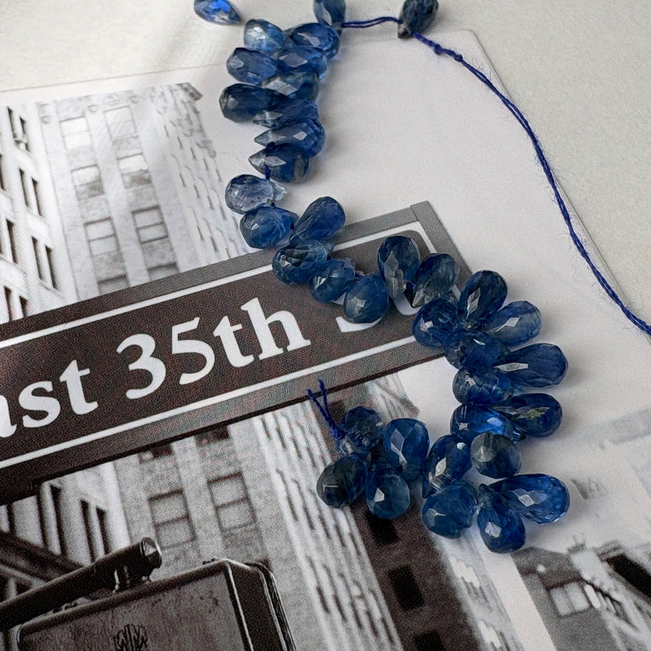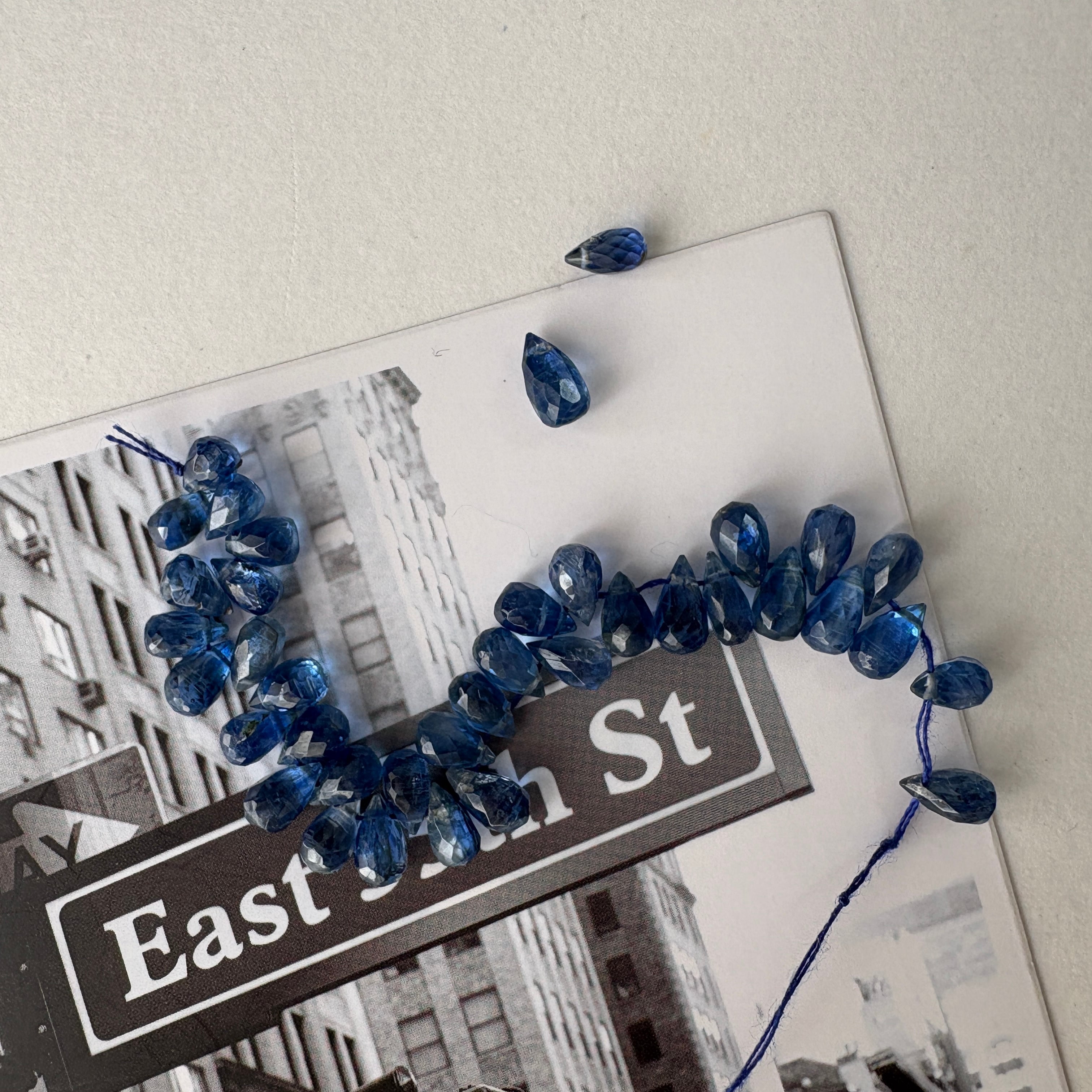 〔天然石 カイヤナイト ドロップ 半連 〕