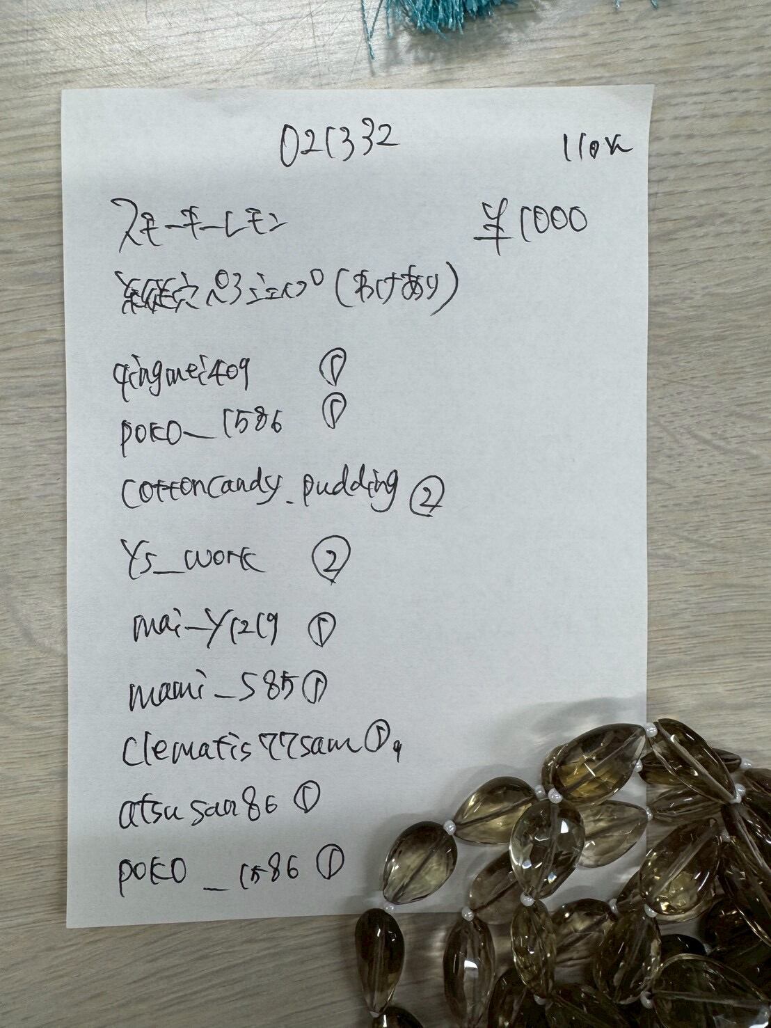 1. 021332 スモーキークォーツ ペアシェイプ 縦穴(訳あり) @1000 (1)
