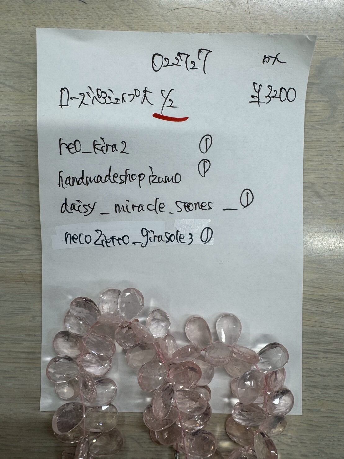 4 022727 ローズクォーツ ペアシェイプ 大 半連 @3200 1