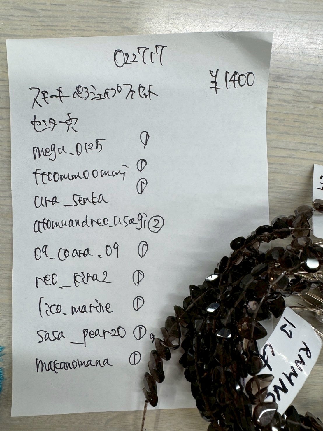 1 022717 スモーキークォーツ ファセット センター穴 @1400 1