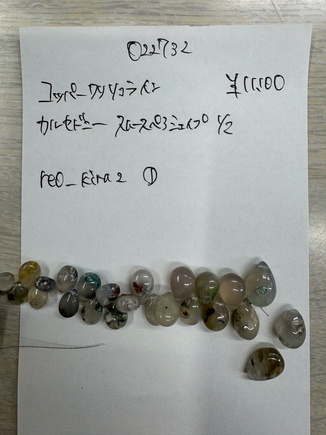17 022732 コッパークリソコラインカルセドニー スムースペアシェイプ 半連 @11100 1