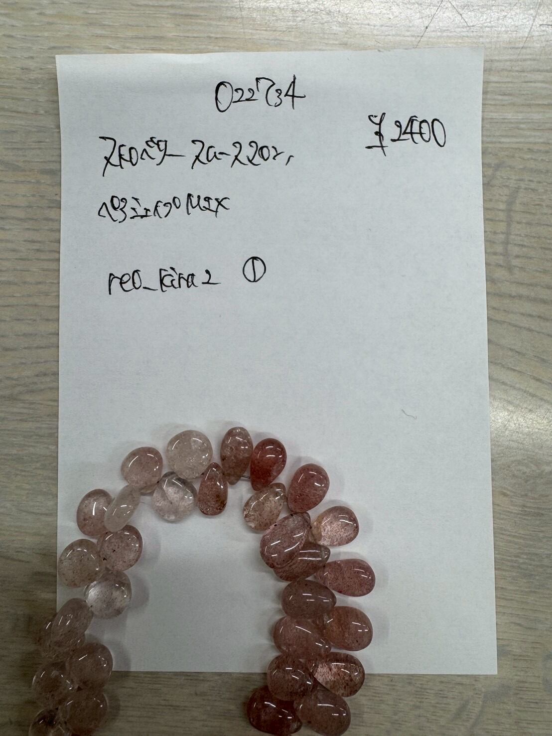 14 022727 ローズクォーツ ペアシェイプ 大 半連 @3200 1