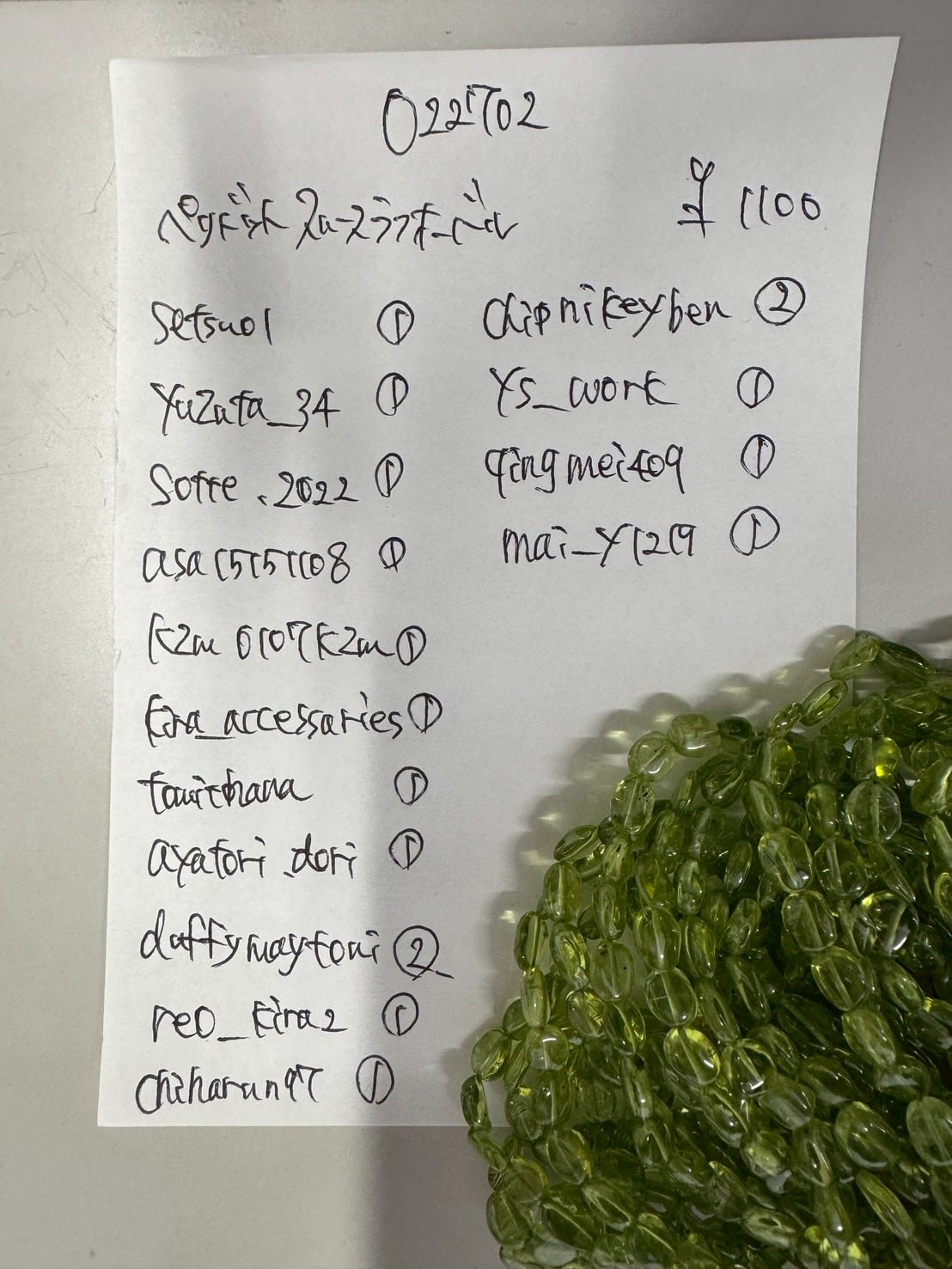 2 022703 ペリドット スムースドロップ 小(欠け有) @1400 1