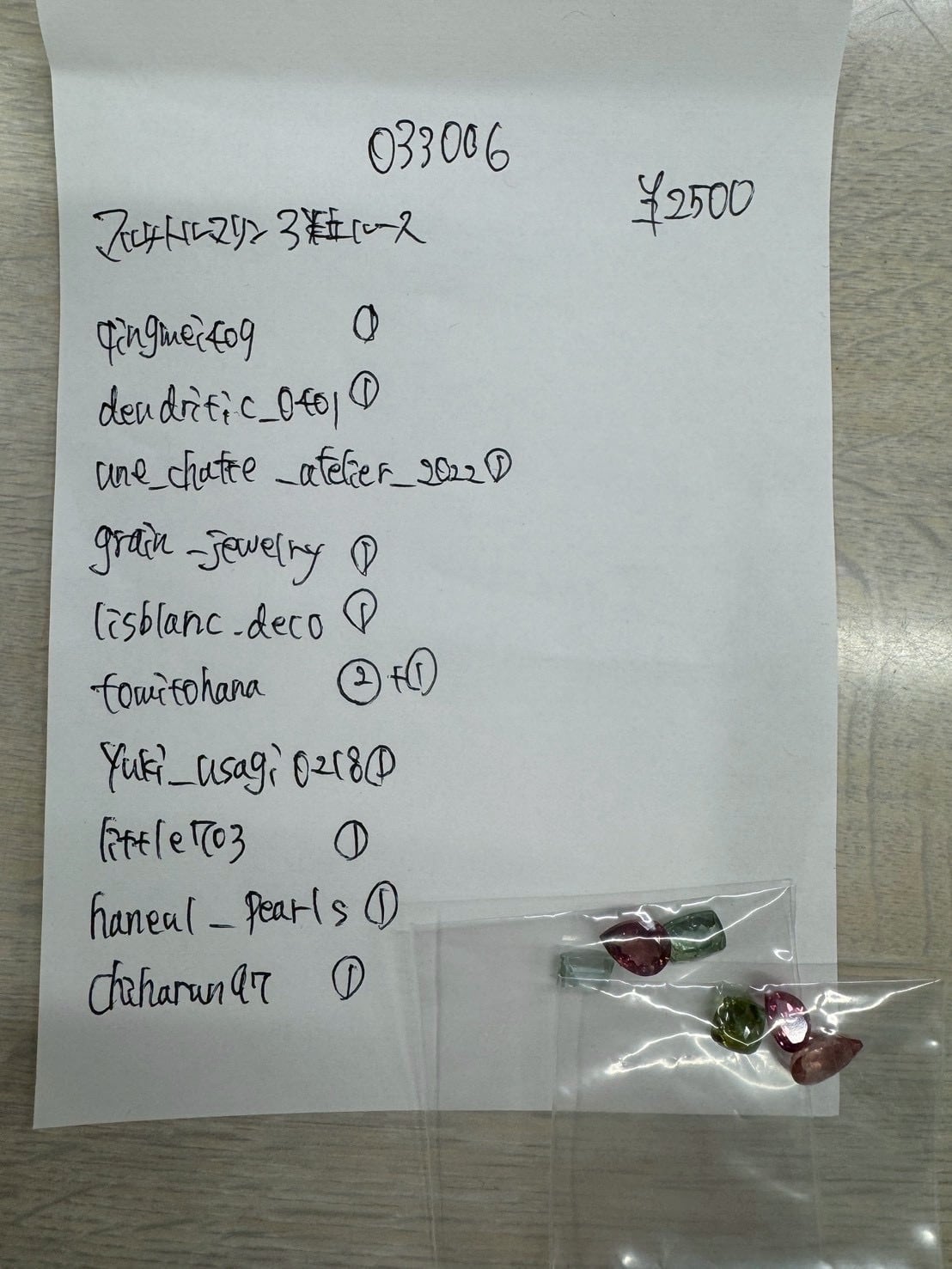 1 033006 マルチトルマリン ランダムルース3粒 @2500 1