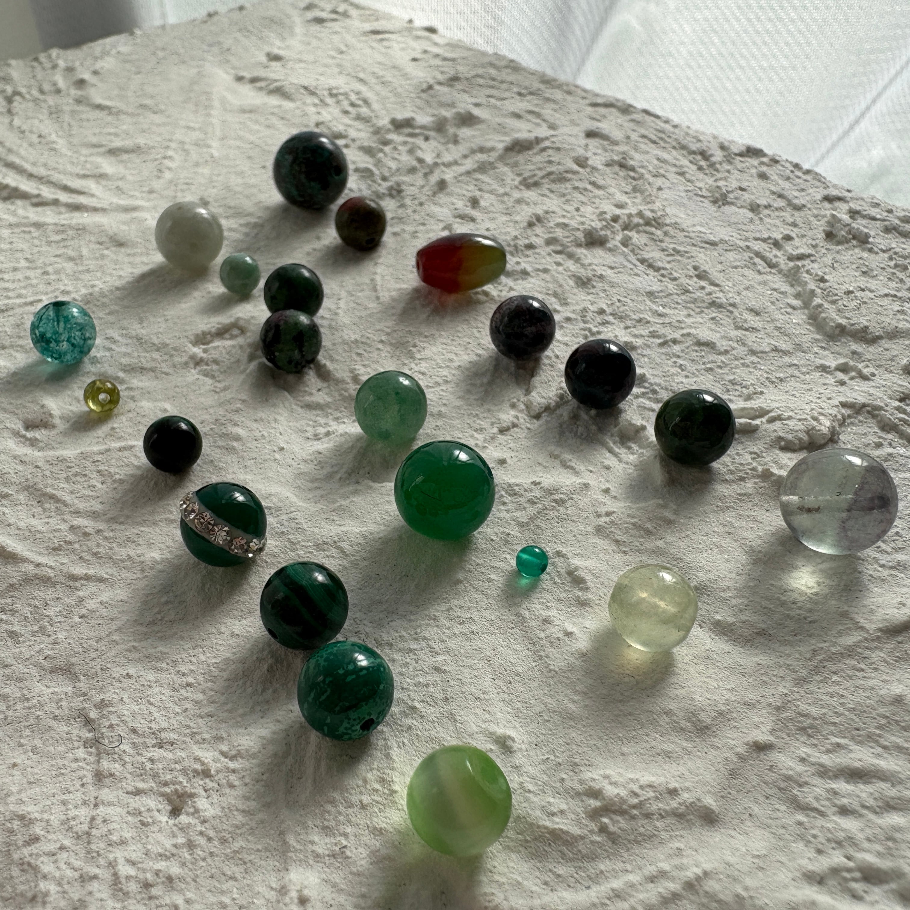 ひとつの天然石でも、サイズ・形・カットなどが様々です。