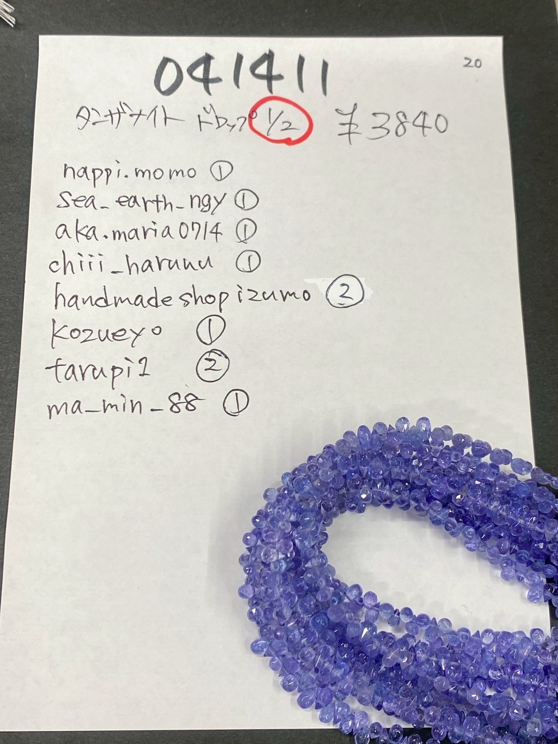3 041411 タンザナイト ドロップ半連 @3840 1