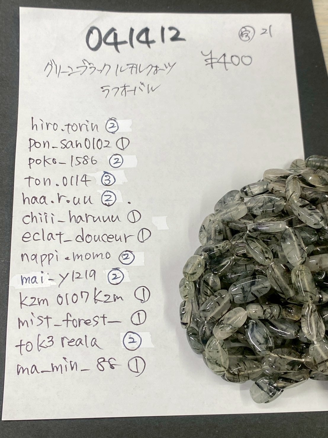 1 041412 グリーンブラックルチルクォーツ ラフオーバル @400 1