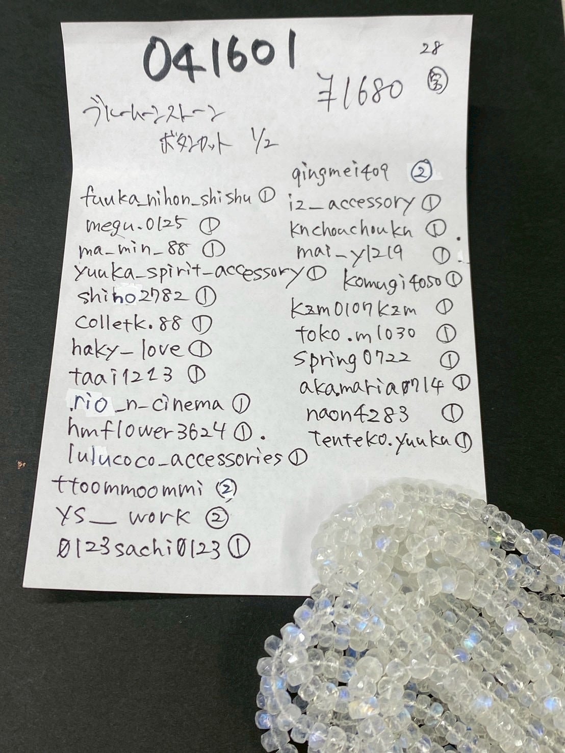 1 041601 ブルームーンストーン ボタンカット半連 @1680 1