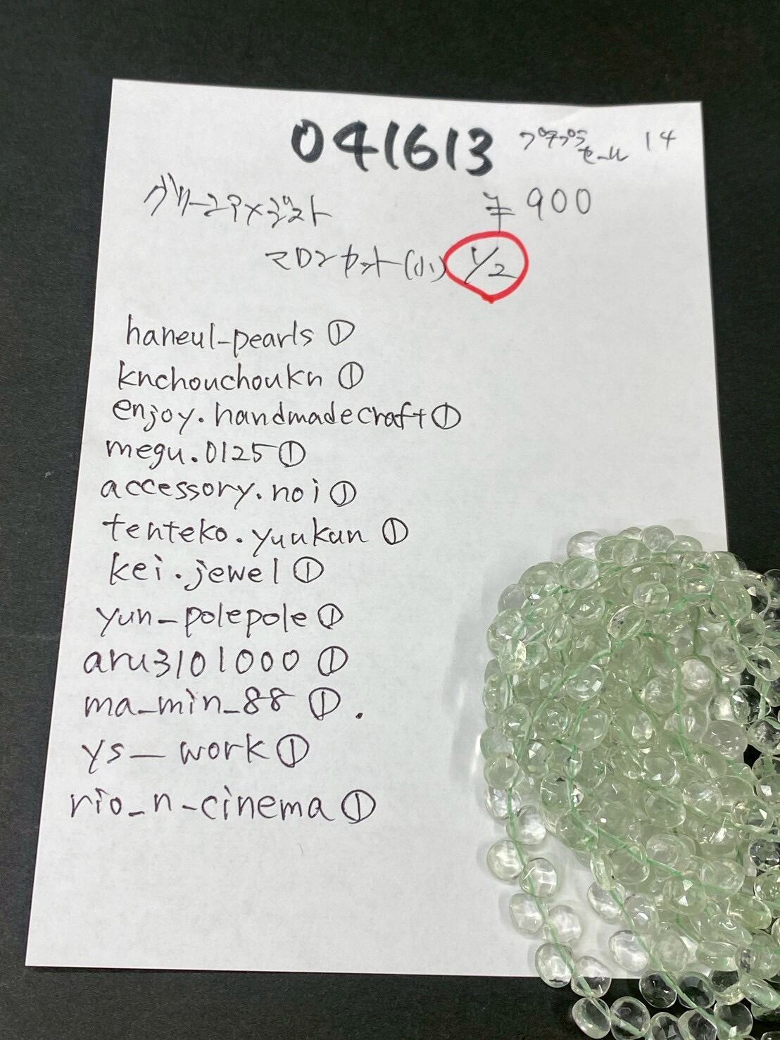 1 041613 グリーンアメジスト マロンカット小半連 @900 1