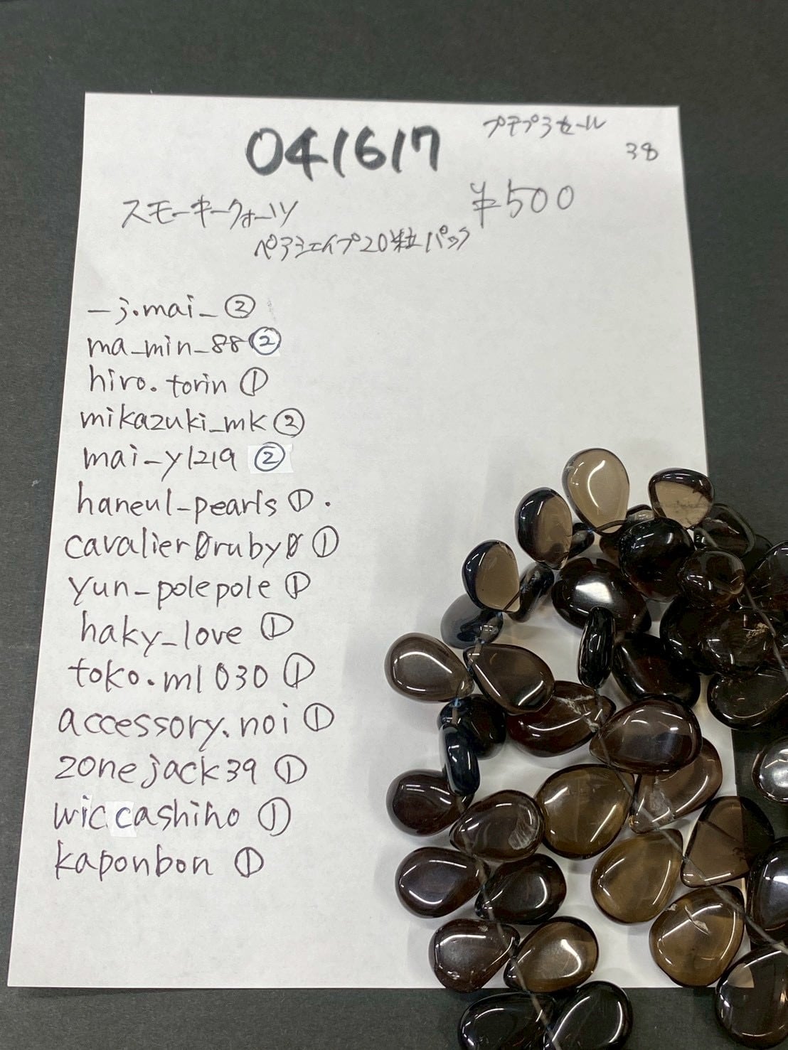1 041617 スモーキークォーツ ペアシェイプ20粒パック @500 1