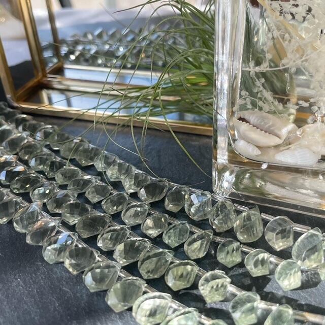 〔天然石 グリーンアメジスト ペアシェイプツイストカット〕