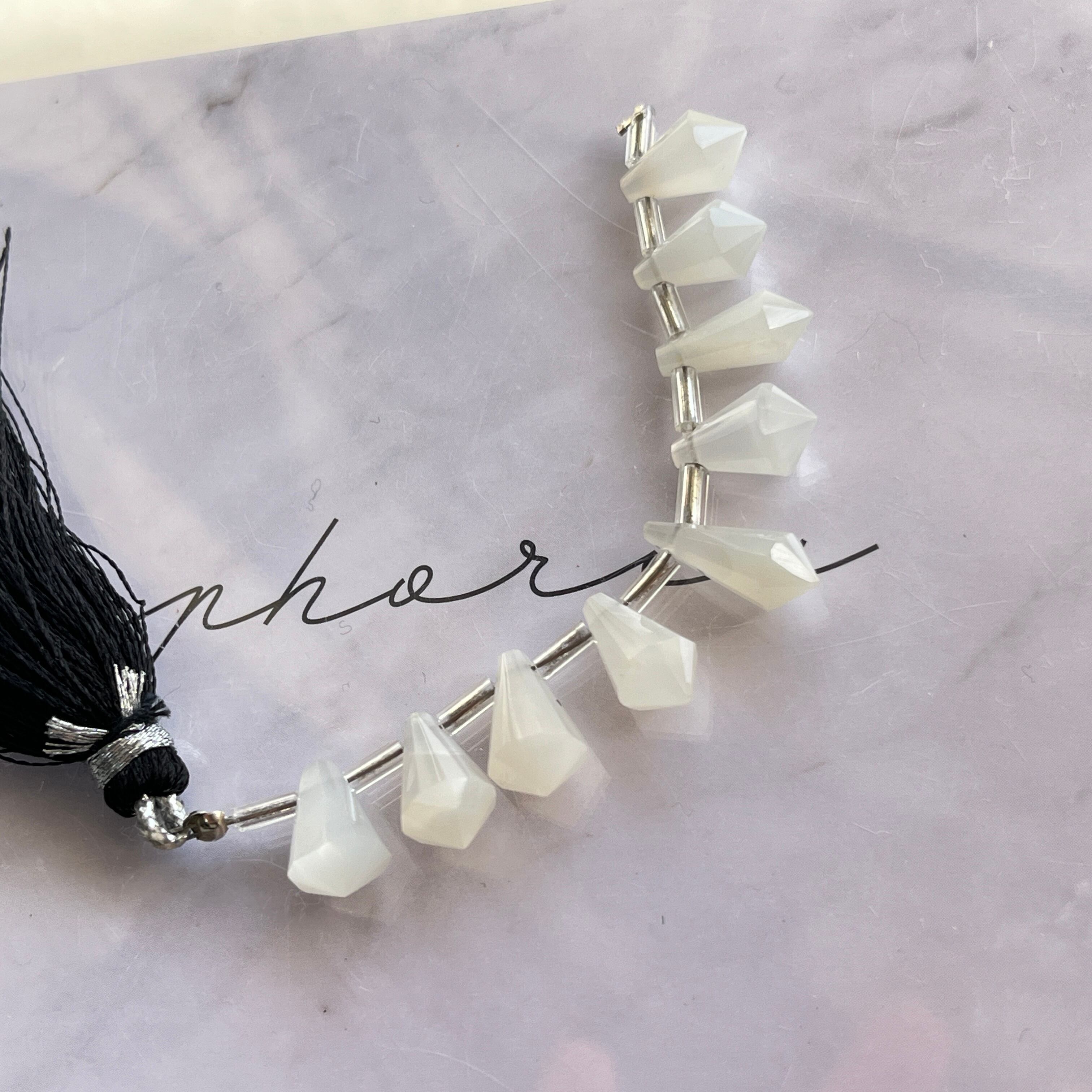 〔天然石 ホワイトムーンストーン シャンデリアカット 半連 〕