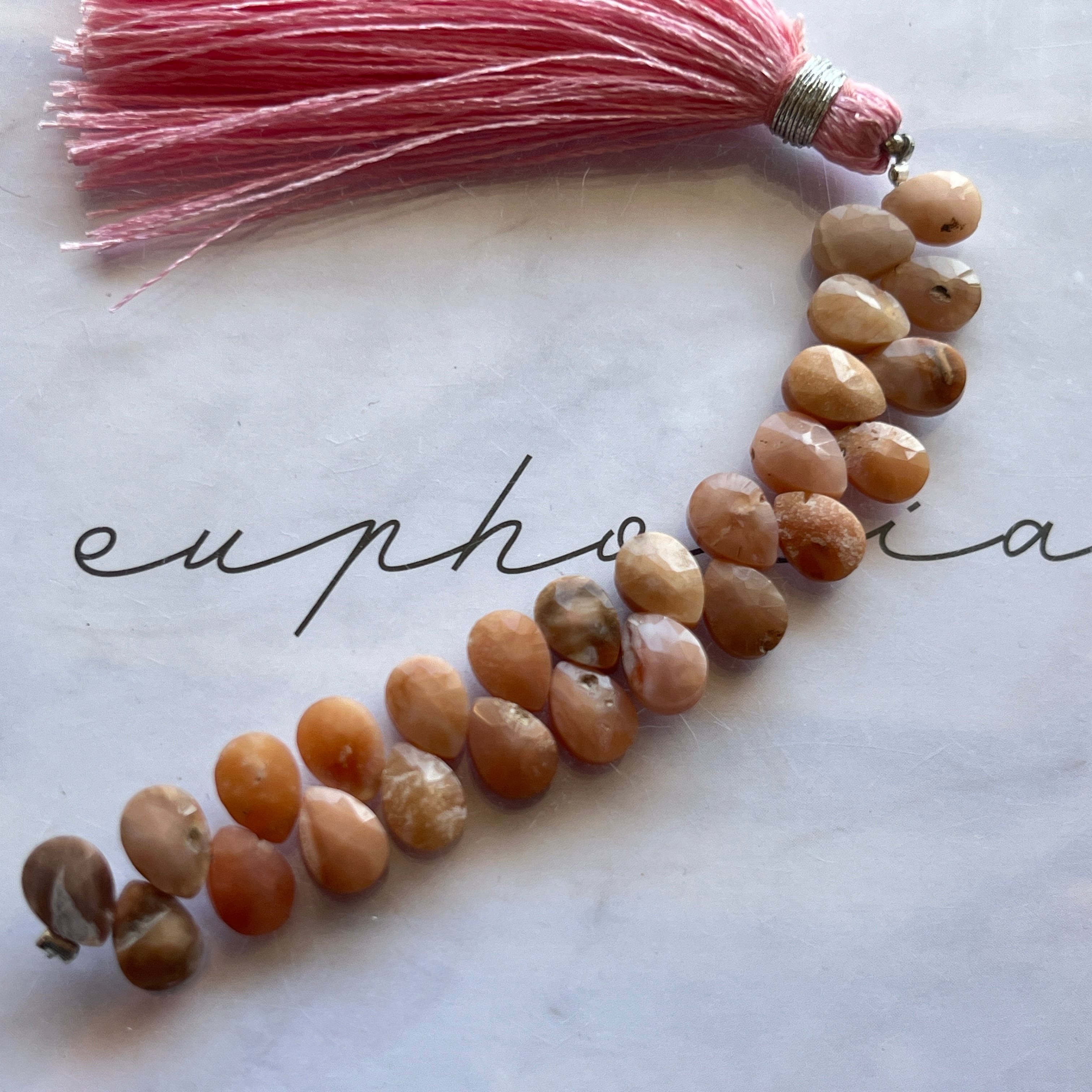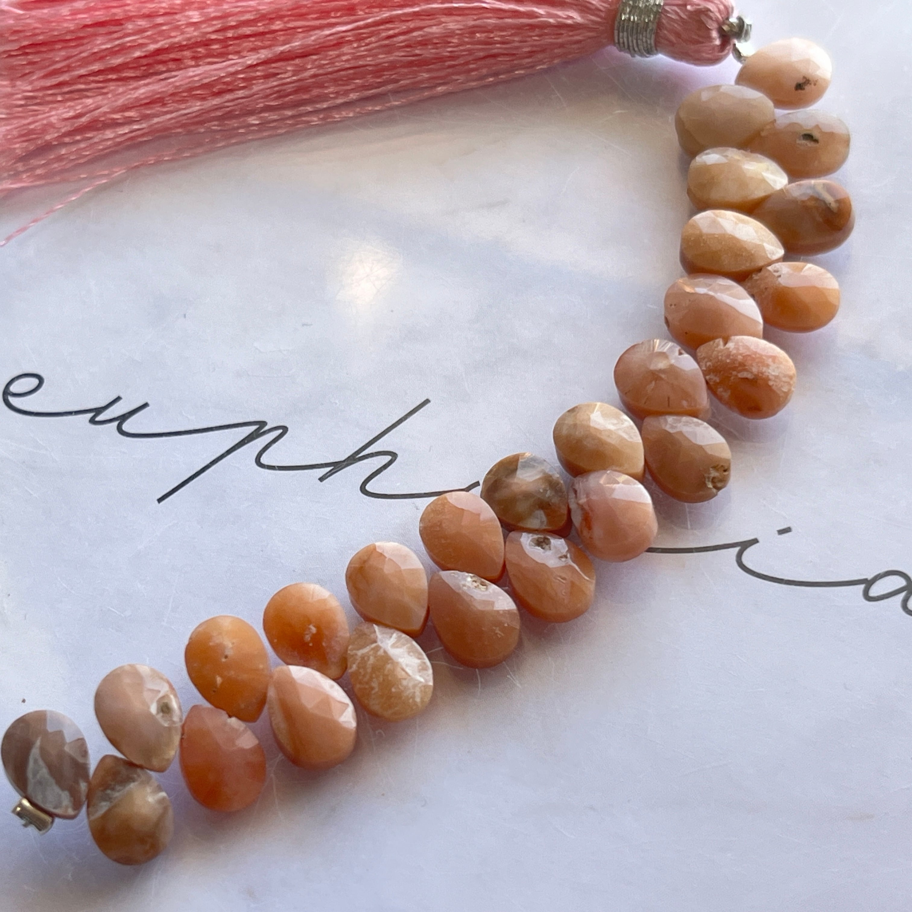 〔天然石 ピンクオパール ペアシェイプ(濃)半連 〕