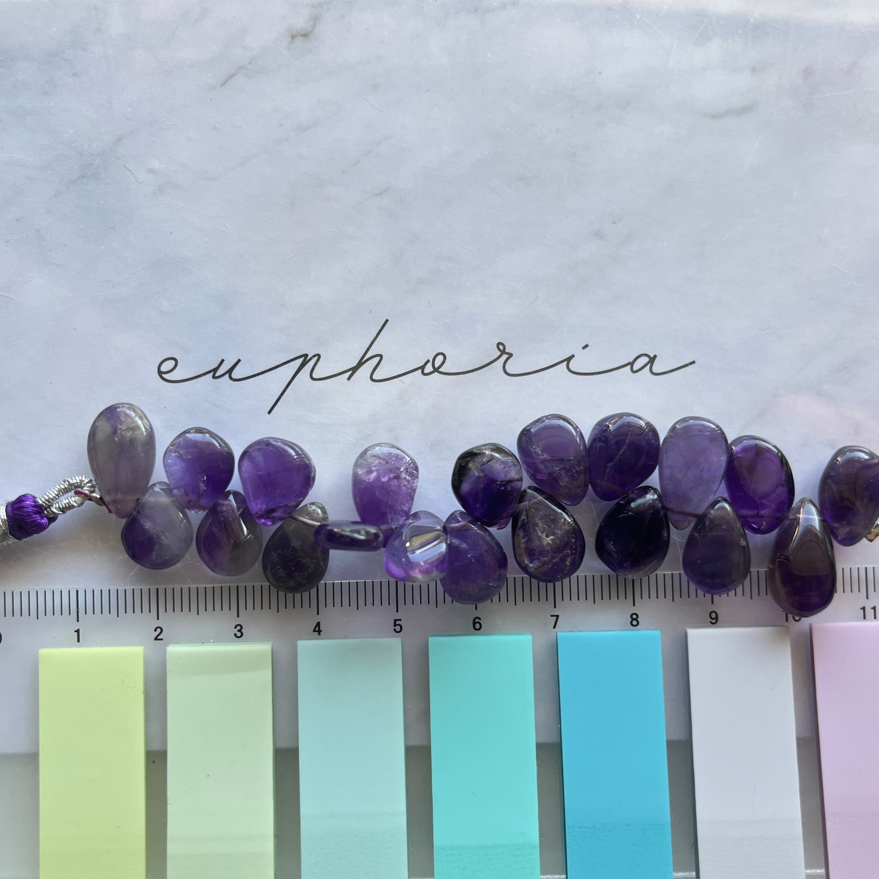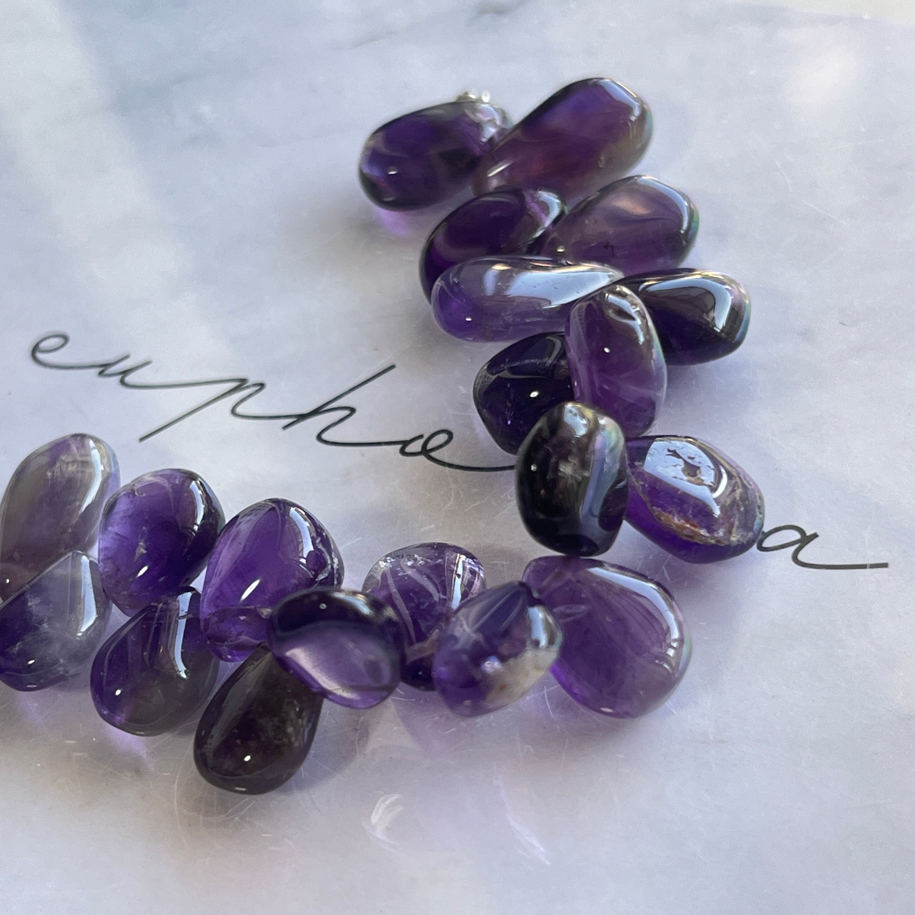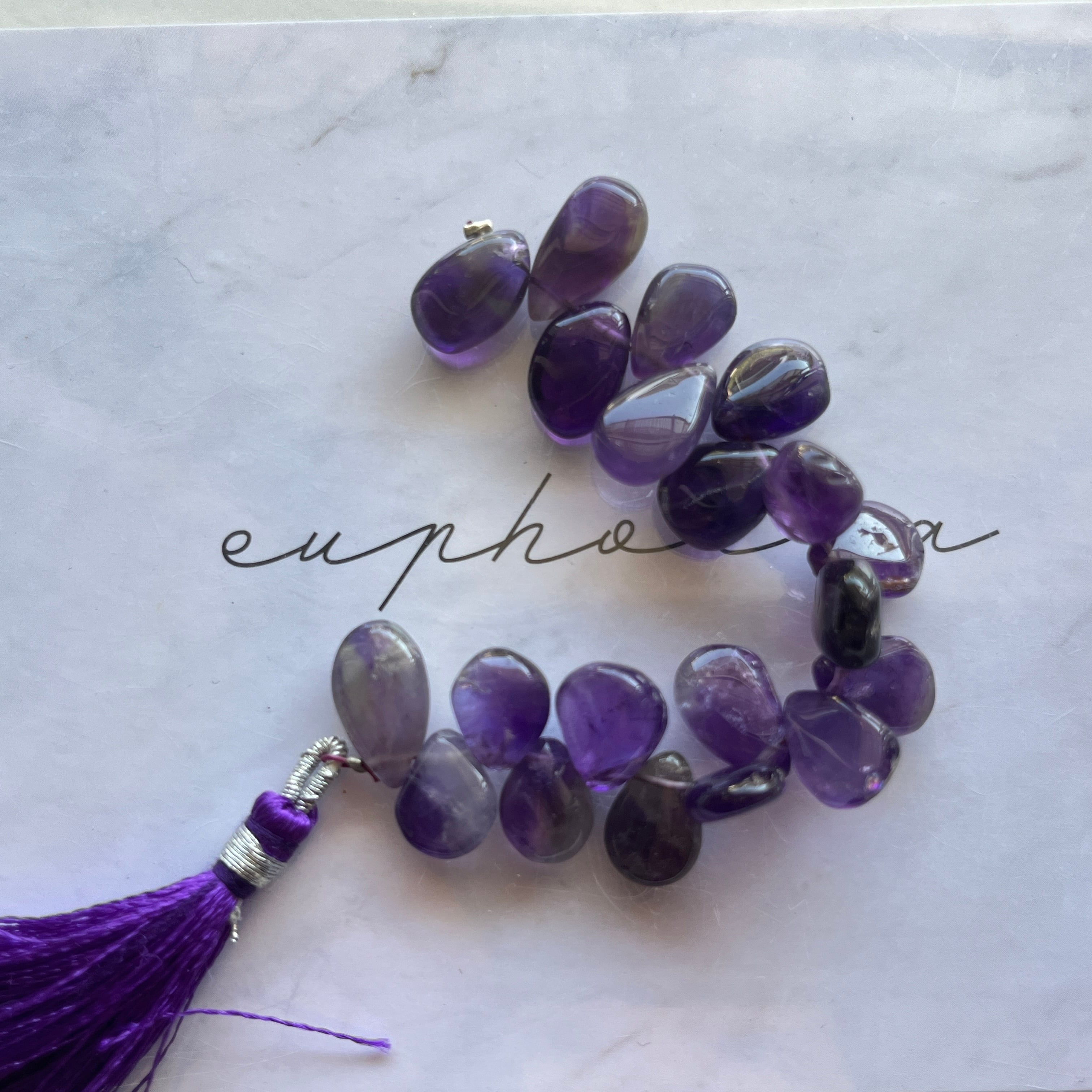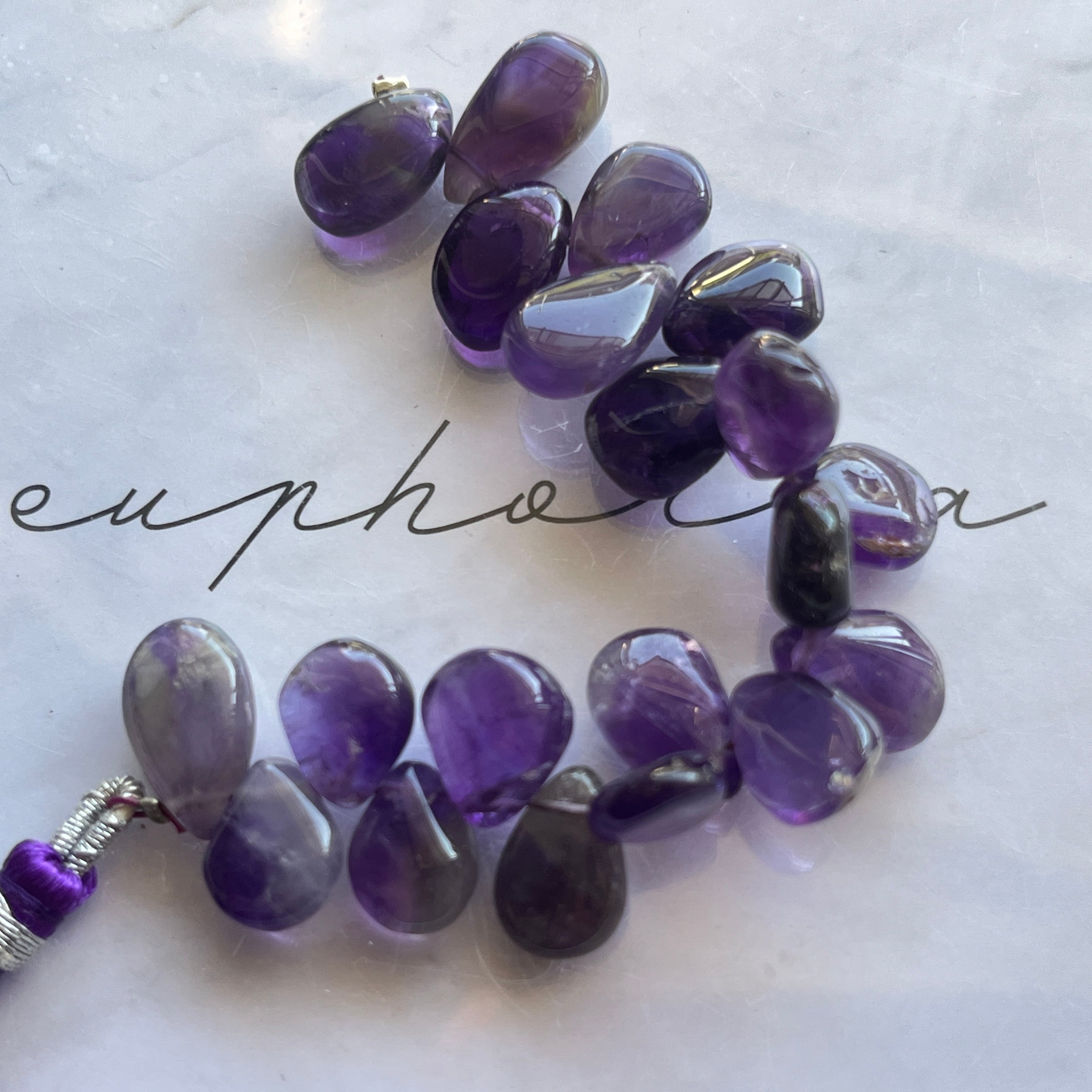〔天然石 アメジスト ペアシェイプ半連 〕