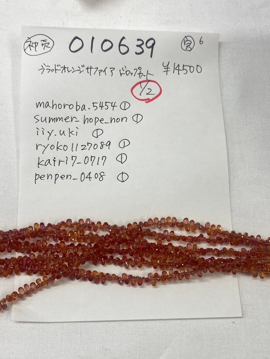 1. 010639 ブラッドオレンジサファイア半連 ドロップ @14500 (1)